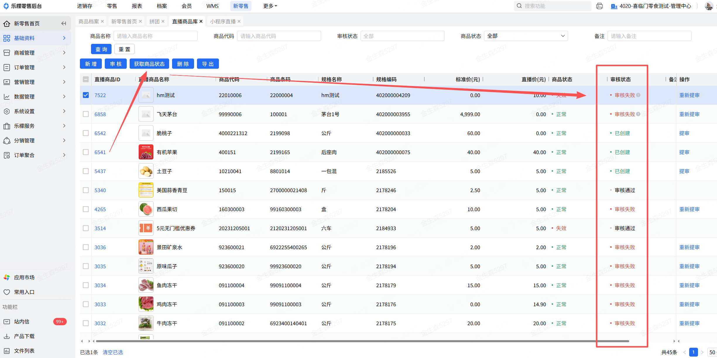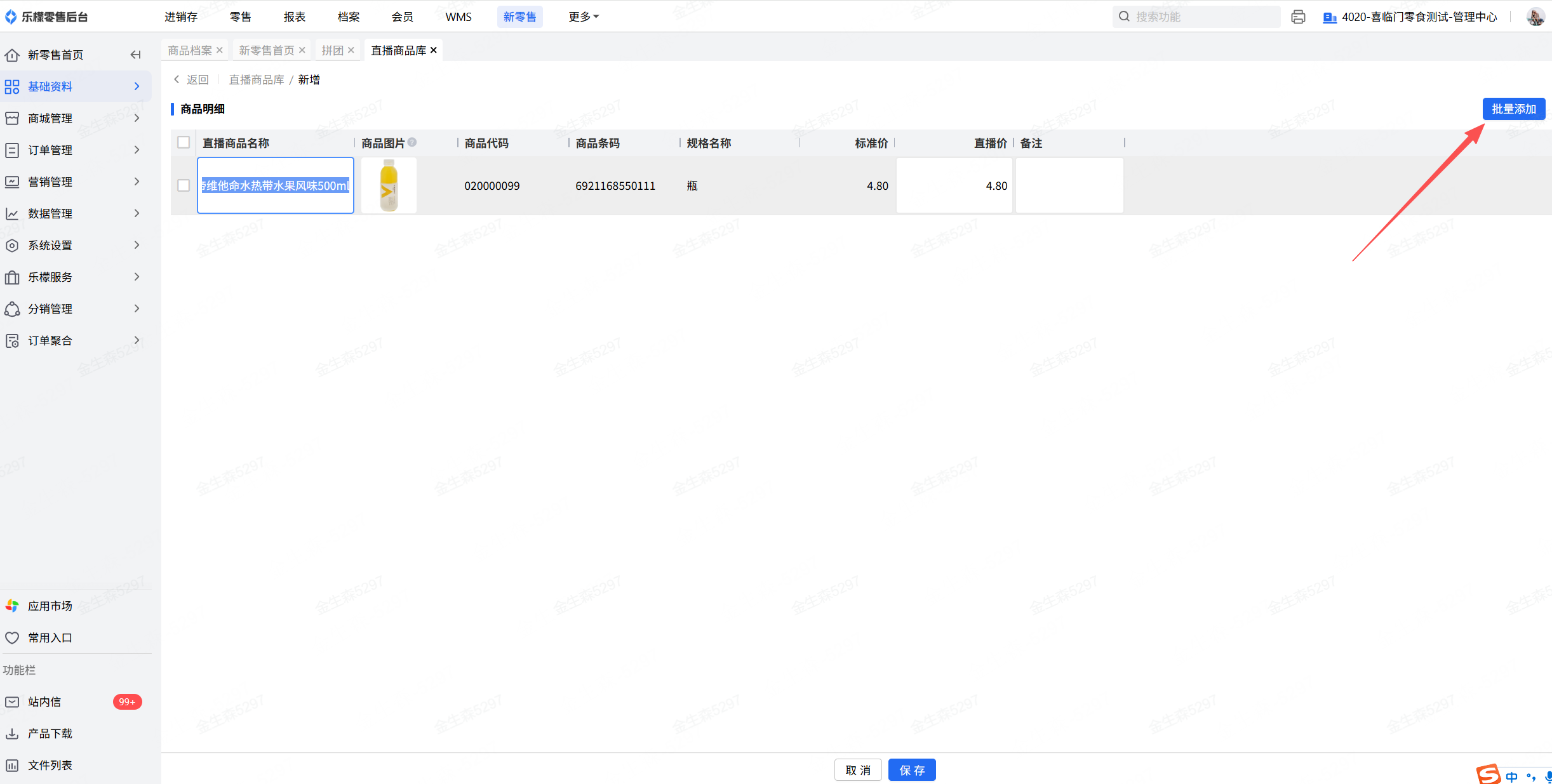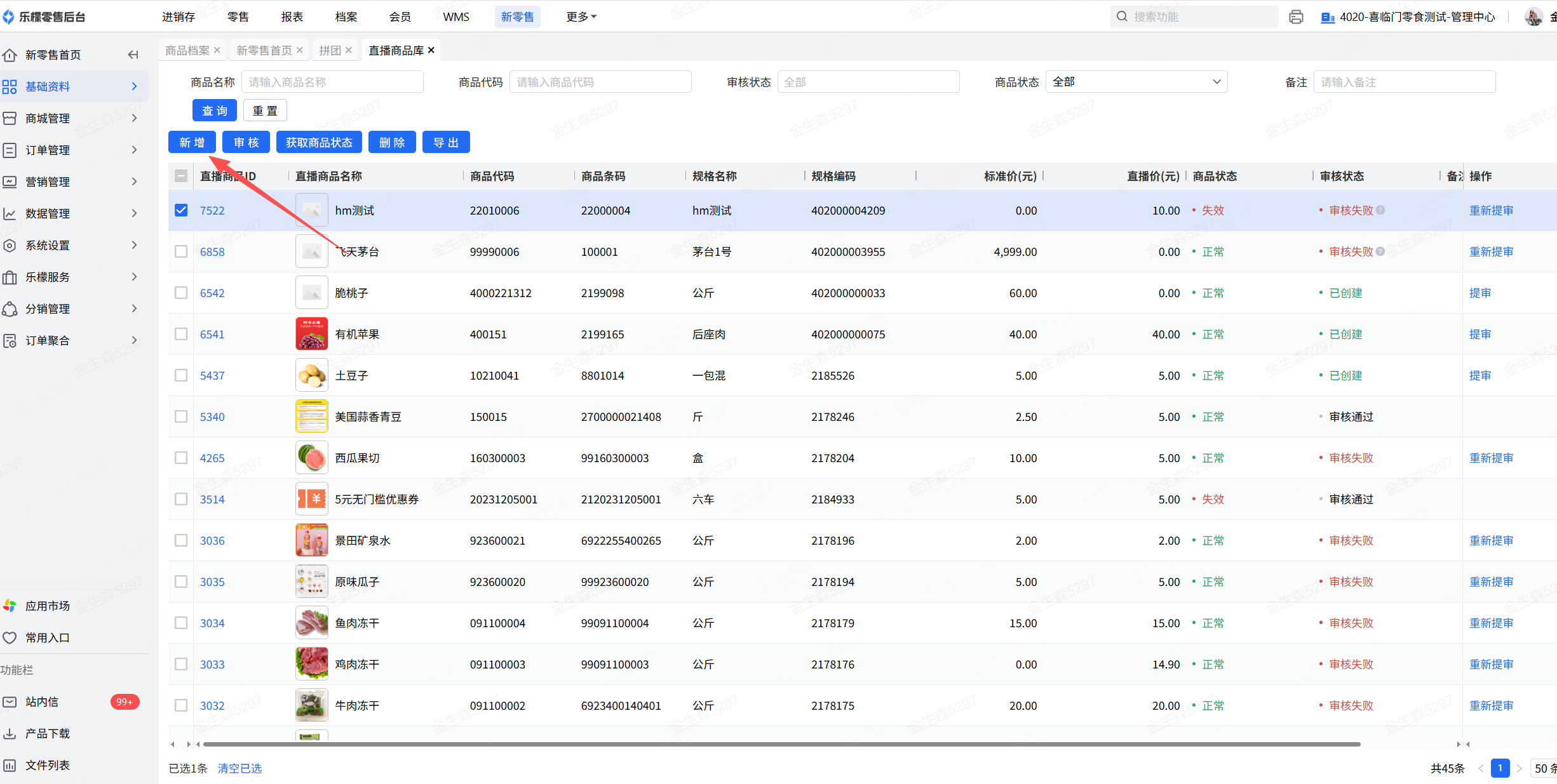 进入基础资料-直播商品库中,新增直播商品,需要提交微信审核并审核通过后的商品方可用于直播