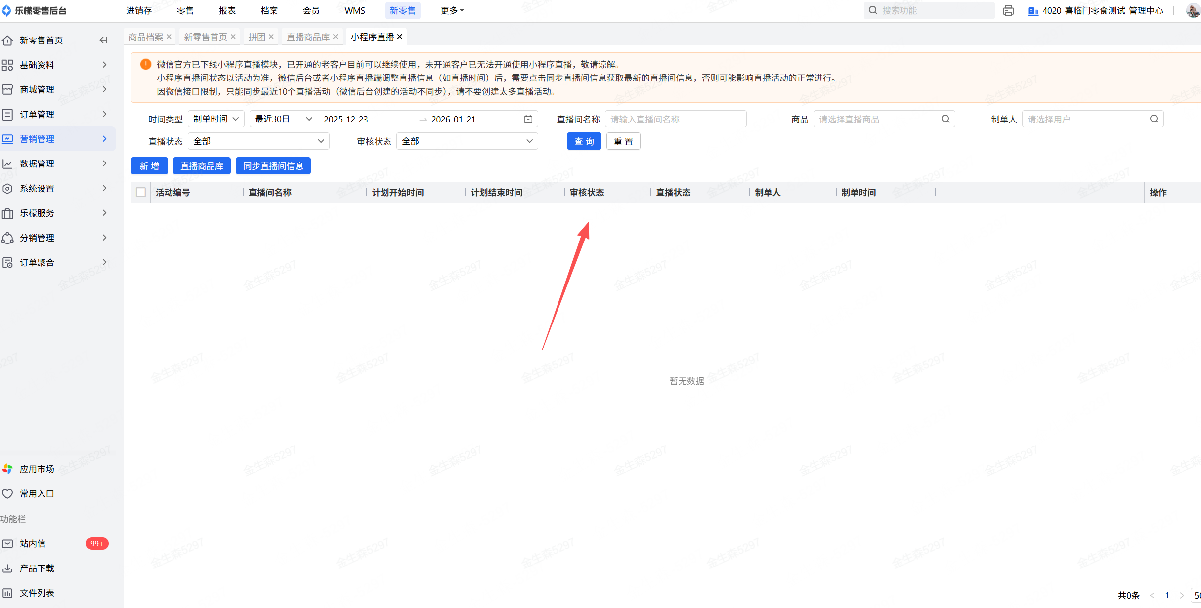若商户需要继续使用直播功能,可购买微吼平台,详情请见:乐檬新零售V2 - 小程序内嵌支持微吼直播