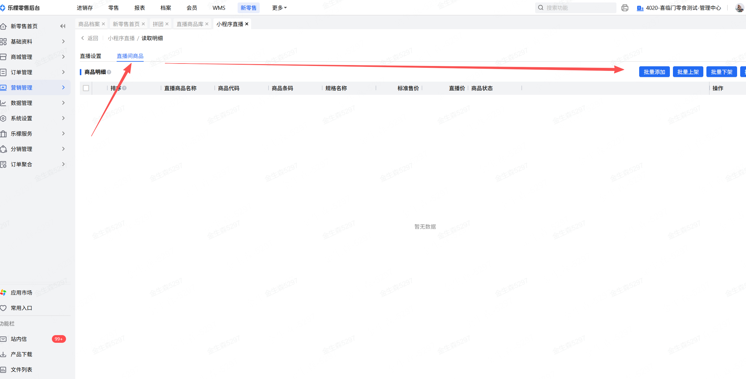 直播间商品只能通过新零售添加,不能通过小程序直播直接导入