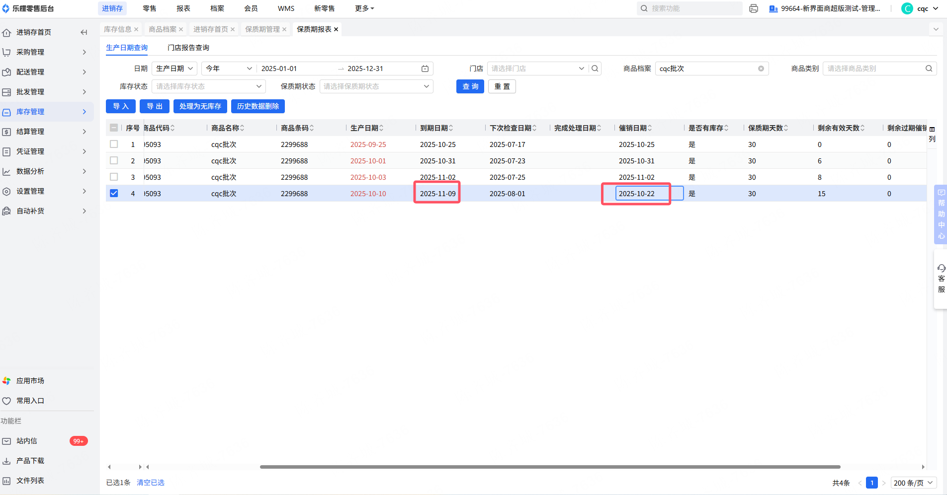 ④右上角筛选按钮选择“全部”模式时,还可以查询到正常状态没有到检查日期的商品