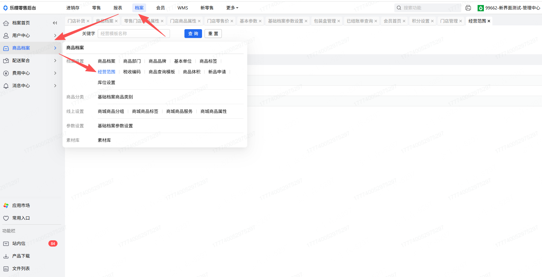 如设置了,需要把查询不到的商品添加到此经营范围内;