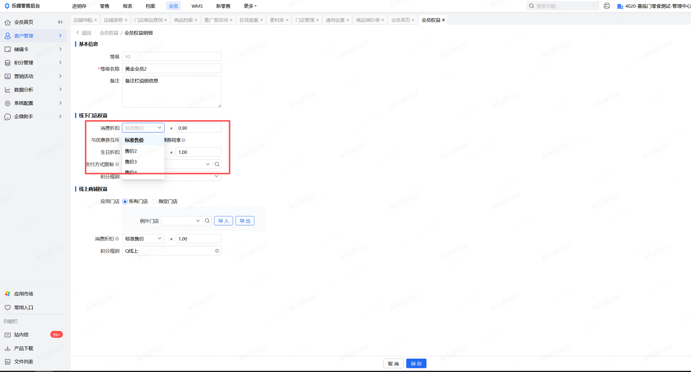 商品在商品库中设置了售价2、售价3、售价4,但结账时会员还是原价的金额