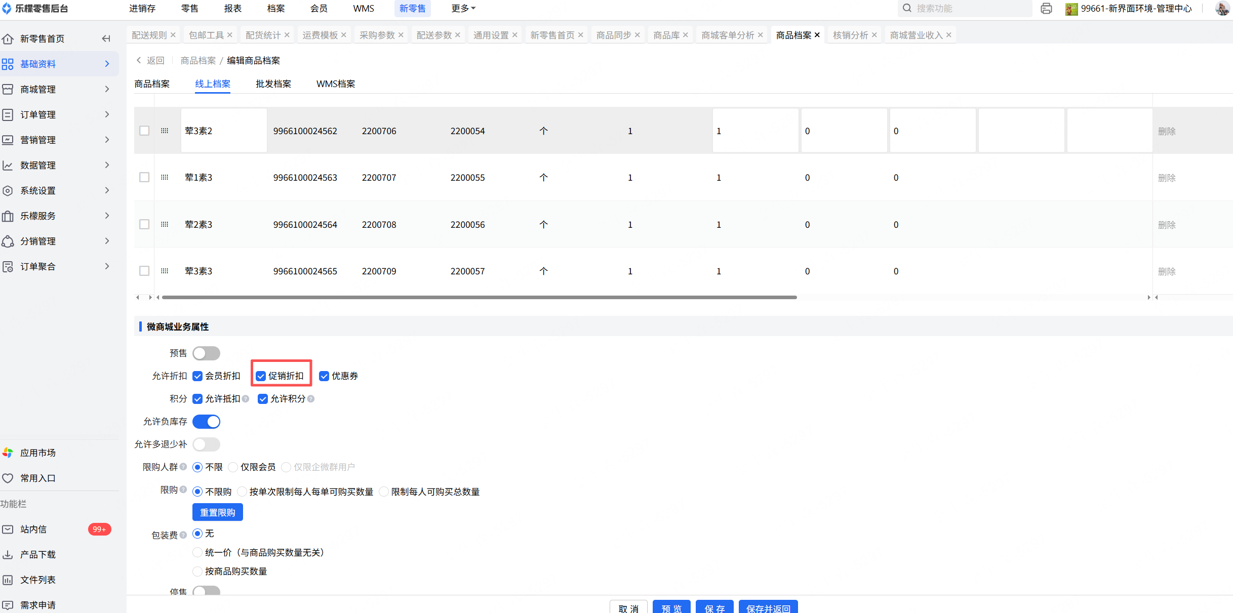 1 | 商品库中允许折扣参数没有勾选 | 进入途径:基础资料-商品档案-进入对应商品中,勾选促销折扣参数 | |