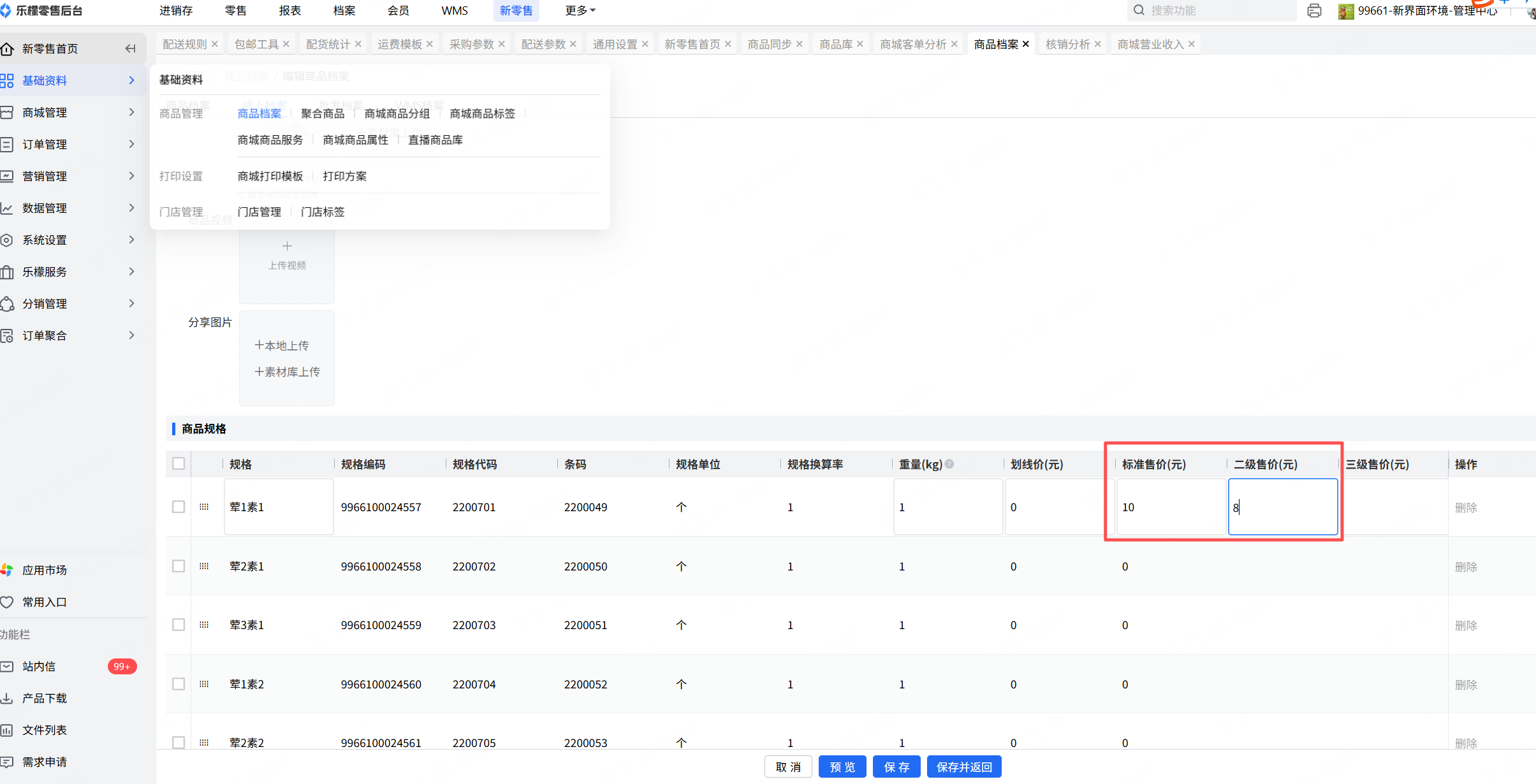 5 | 活动的商品规格删除了 | 将商品档案新的规格重新添加到活动内 |