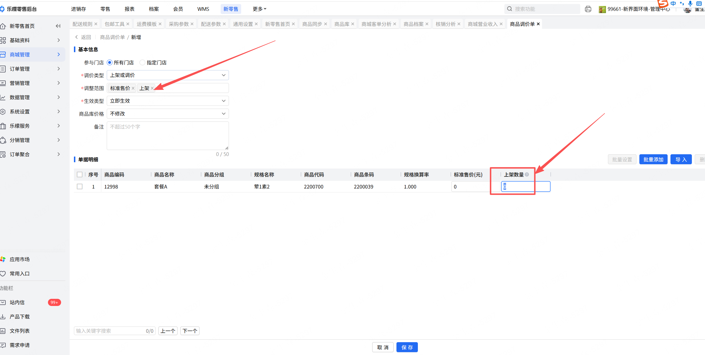 3 | 活动商品没有上架、没有库存 | 通过商品调价单对活动商品进行添加库存、上架 途径:新零售-商城管理-商品调价单 | |