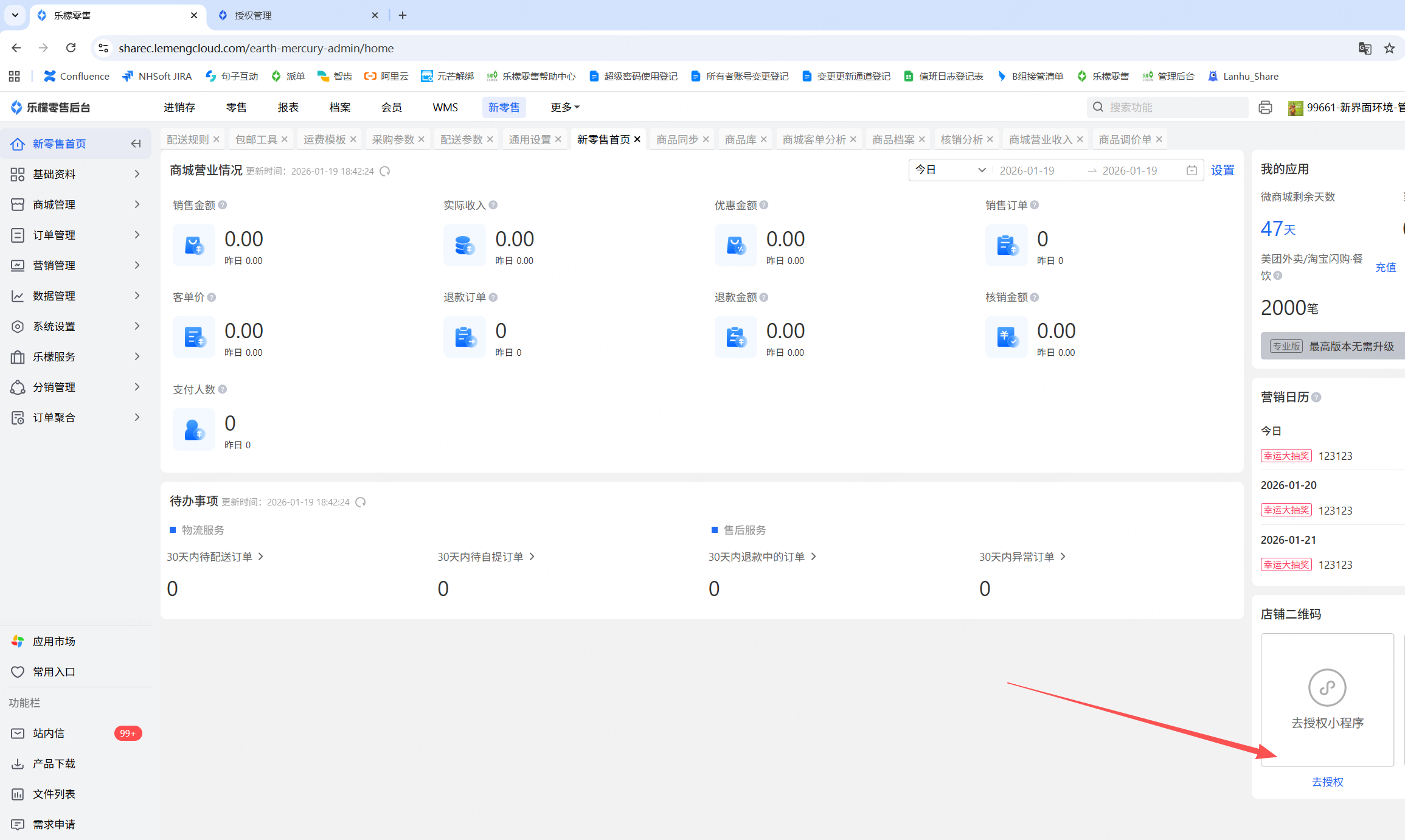 4 | 小程序版本是否最新,部分bug可能导致问题产生 | 进入途径:新零售首页-右侧中下方“授权服务”,进入后点击提交审核 | |