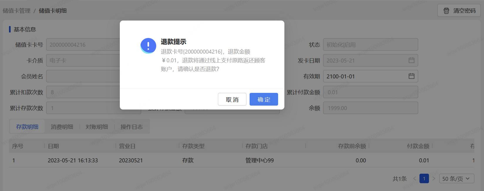 👉【操作路径】:会员-储值卡管理-储值卡详情-存款明细