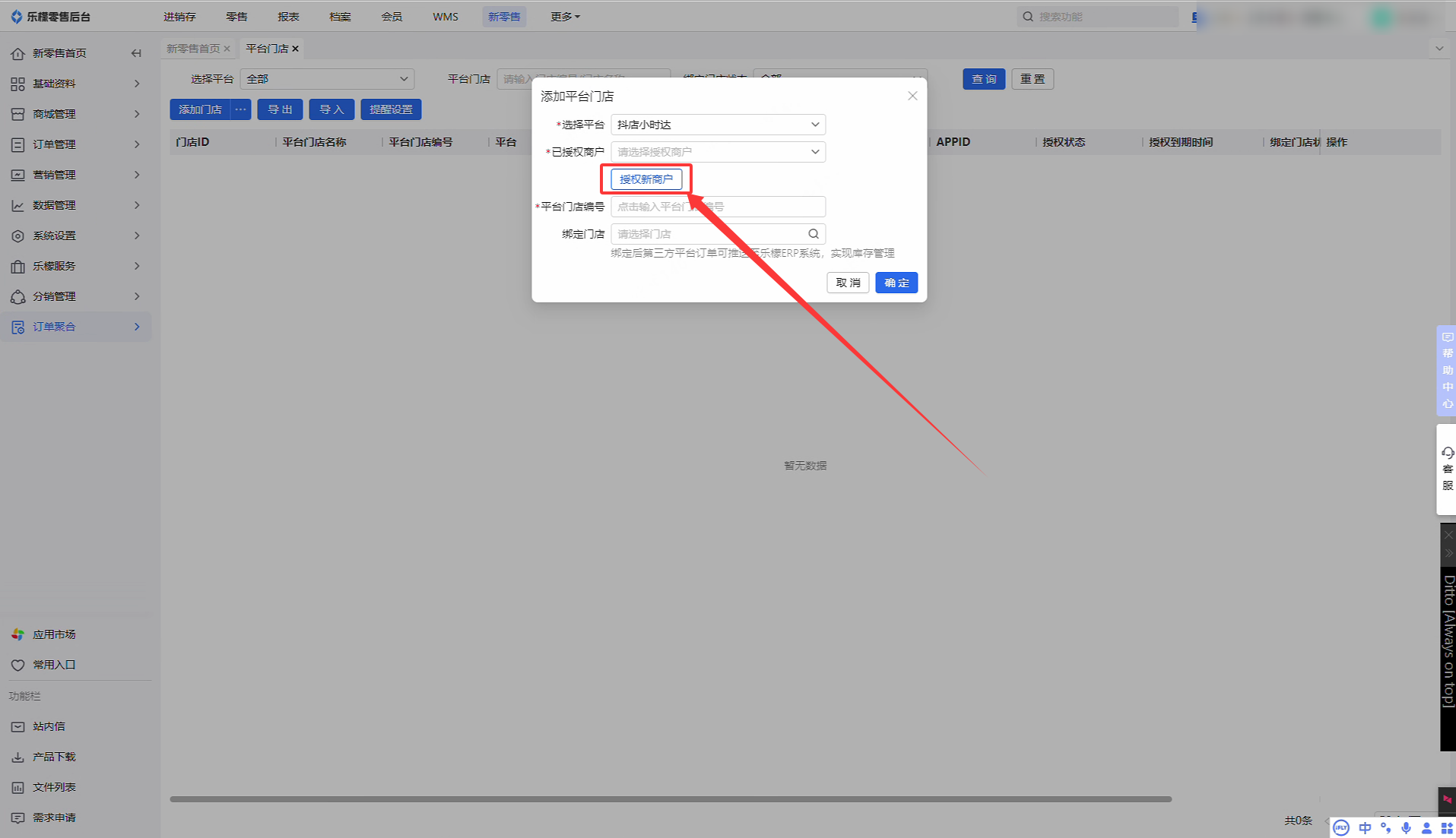 通过乐檬对接小时达,进行同步商品库存、接收订单信息、上架新品