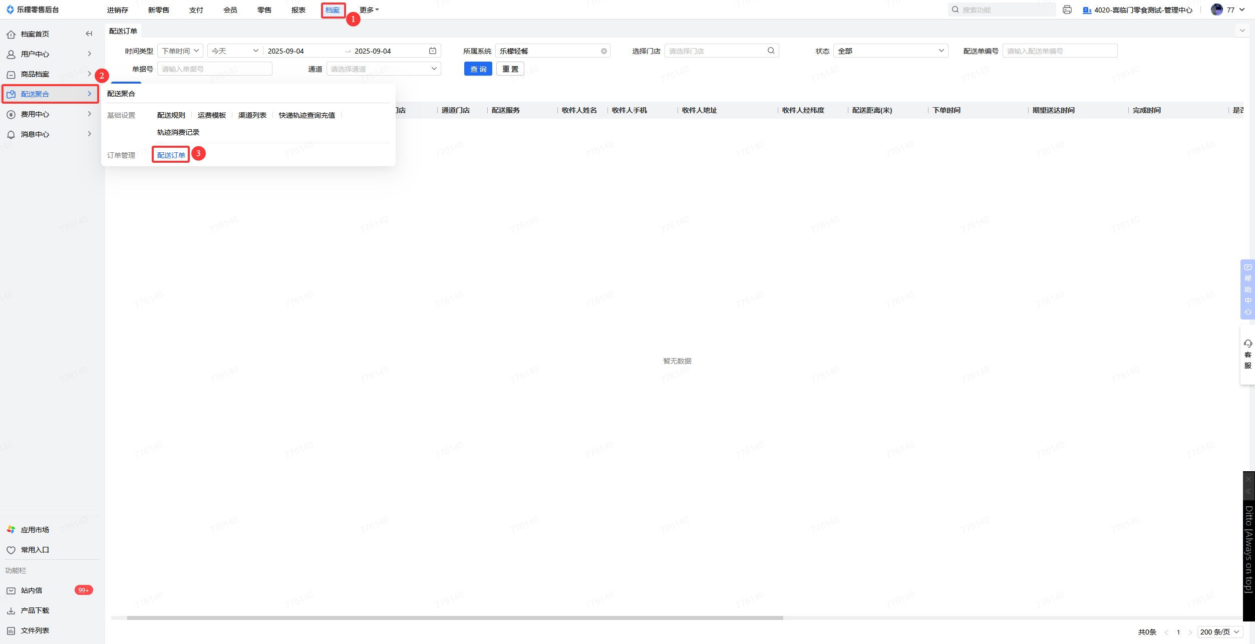 2、 配送规则将测试店铺ID填写到门店配送通道中