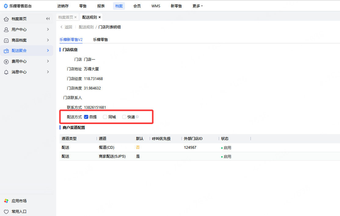 根据门店设置配送方式,支持的配送方式:到店自提(用户上门提货)、同城配送(商家自配、对接第三方骑手配送)、快递发货(对超出配送范围的用户进行发货,如省外)。