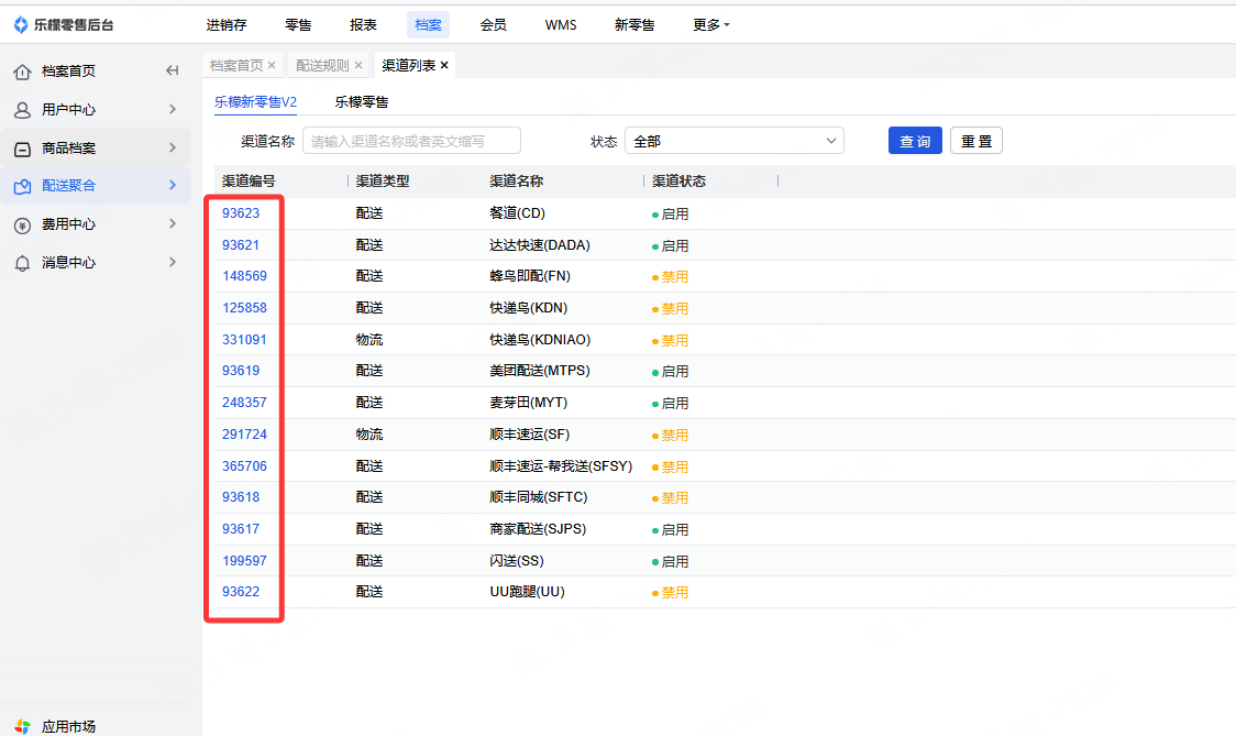 ① 点击“开通”可开通并设置已对接的配送渠道(只能开通渠道列表中启用的渠道)