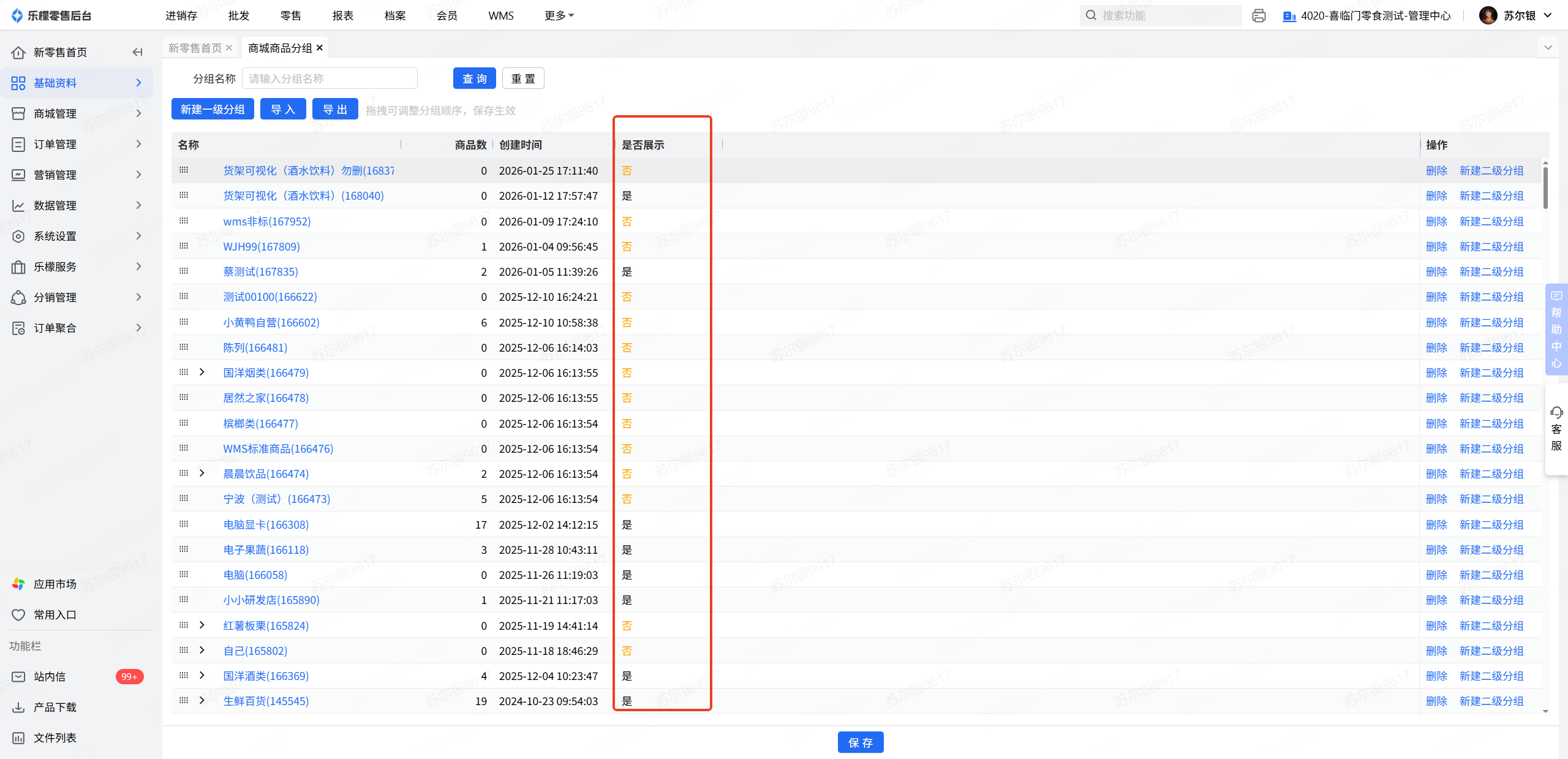 基础资料-商城商品分组,对应分组设置展示,确保在分类界面可以查看到此商品