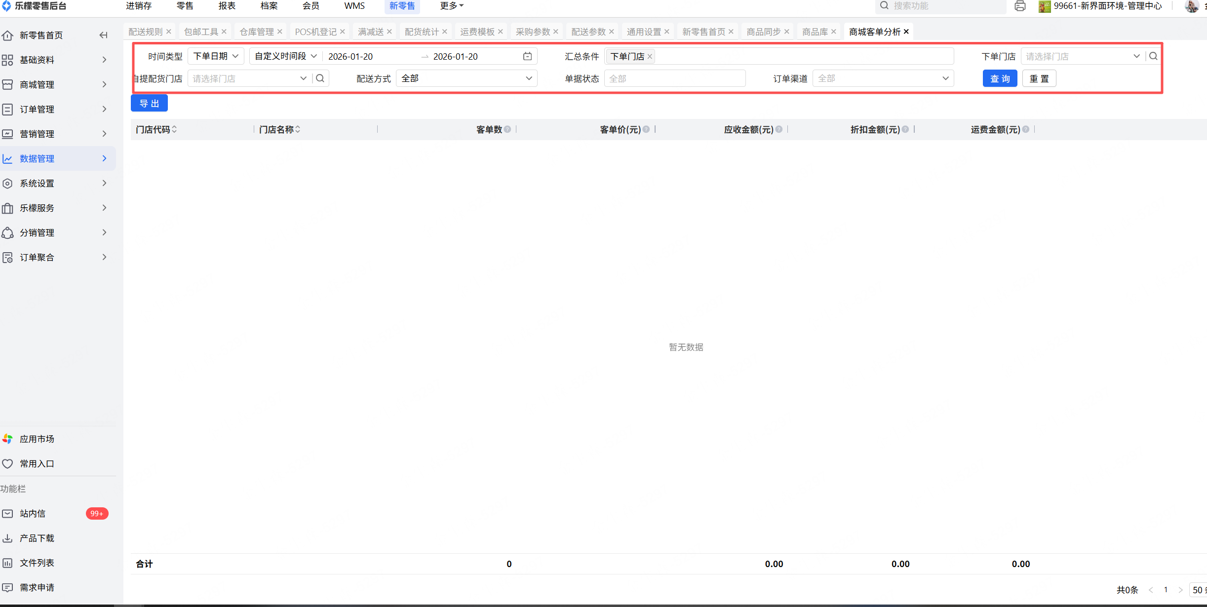 👉【操作路径】:新零售-数据管理-商城客单分析