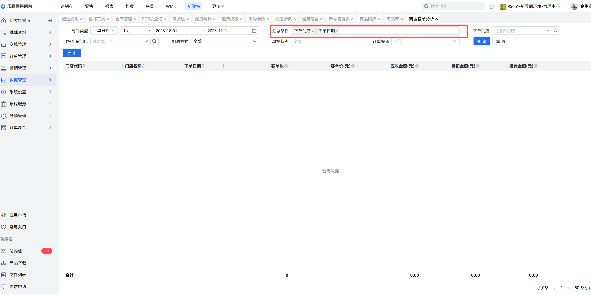 需要在软件内查询新零售每天/每月的客单量、金额汇总