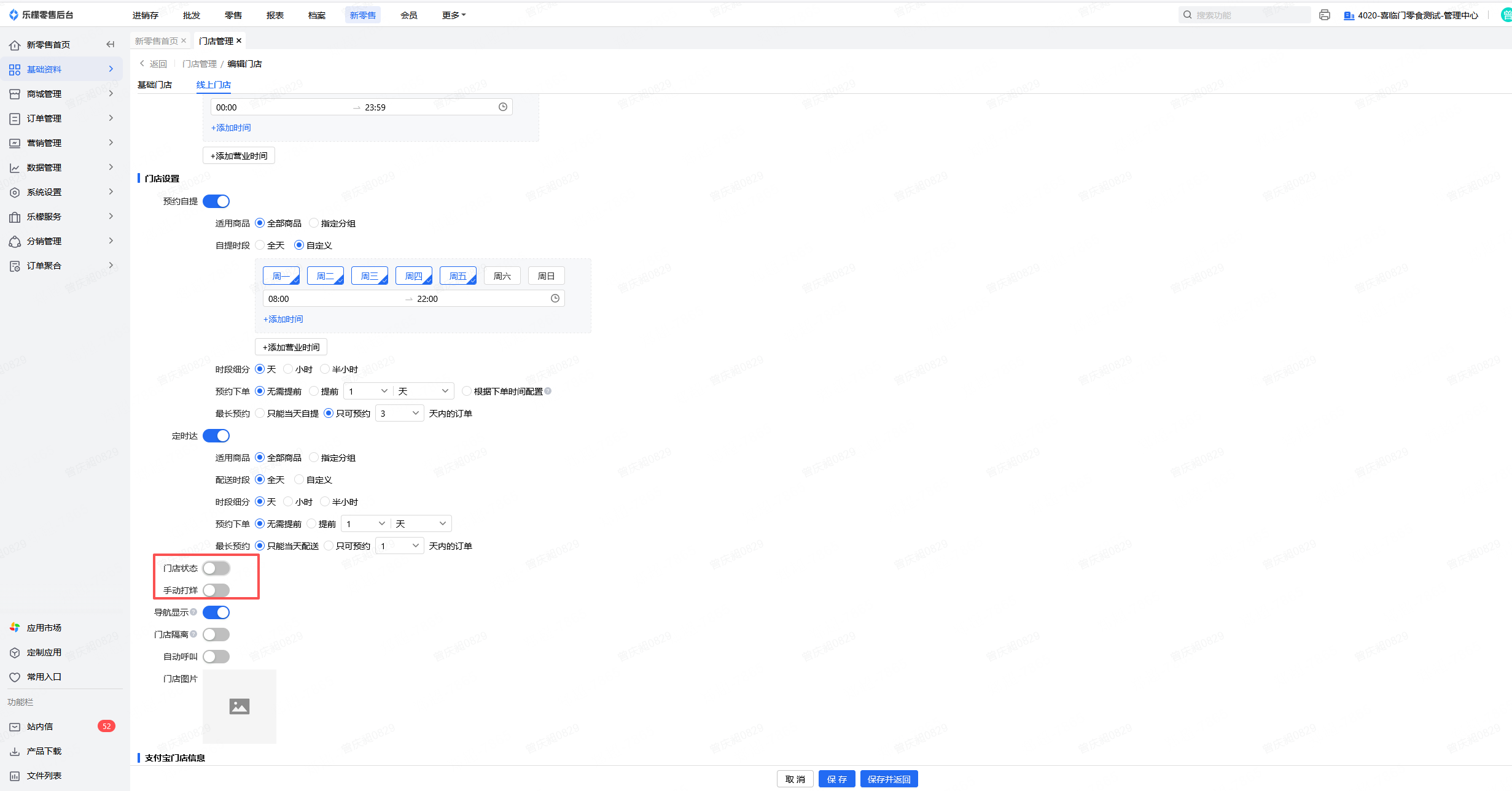 新零售门店关闭/隐藏/不启用/打烊