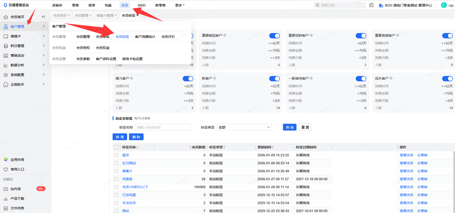 👉【操作路径】:会员-客户管理-会员管理-会员标签