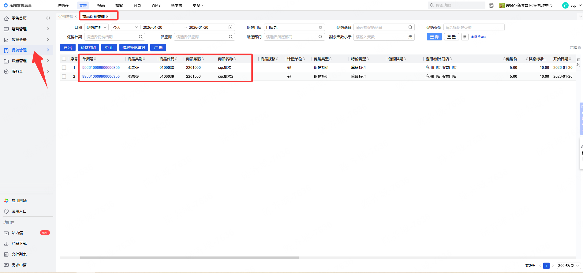 1、👉【操作路径】:1.零售-促销管理-商品促销查询,可通过商品促销查询。