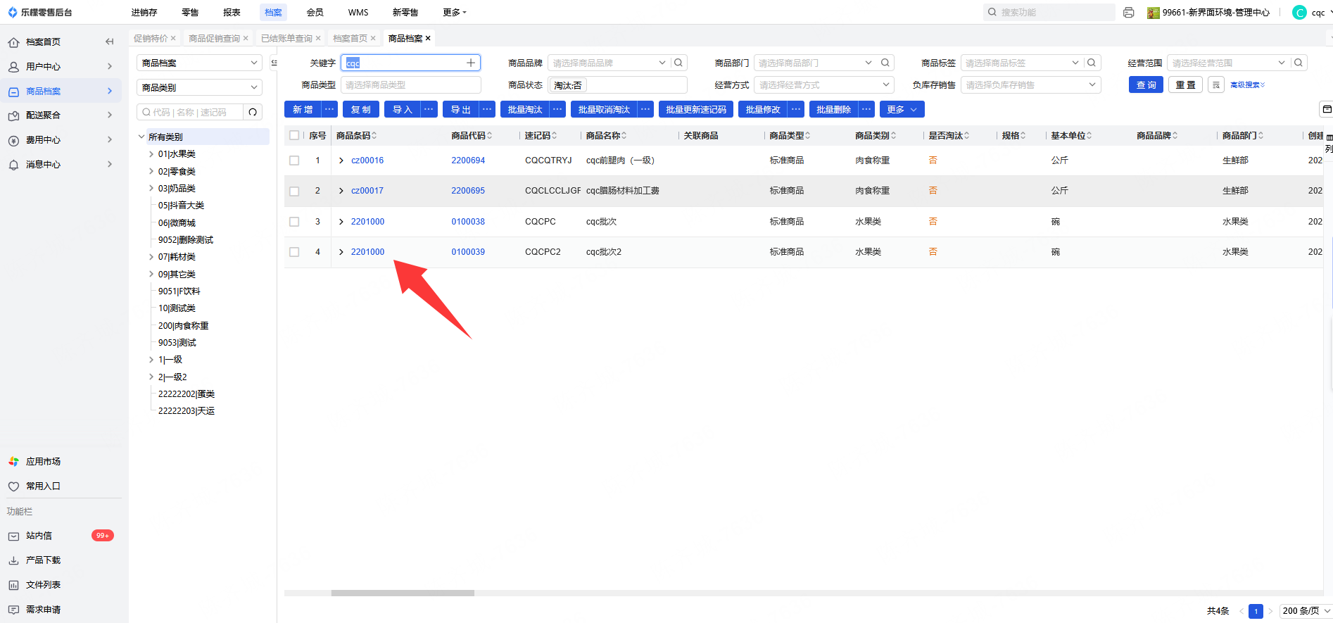 3、商品档案内点中商品条码,在跳转界面内点击今日促销
