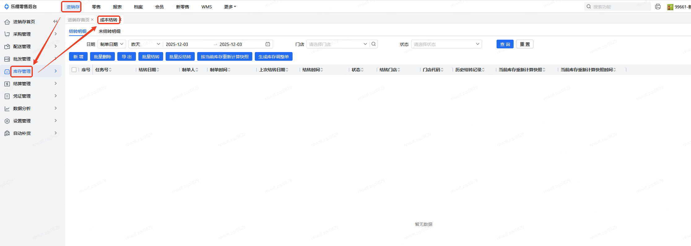 👉【操作路径】:1.进销存-设置管理-系统参数中开启了成本结转参数
