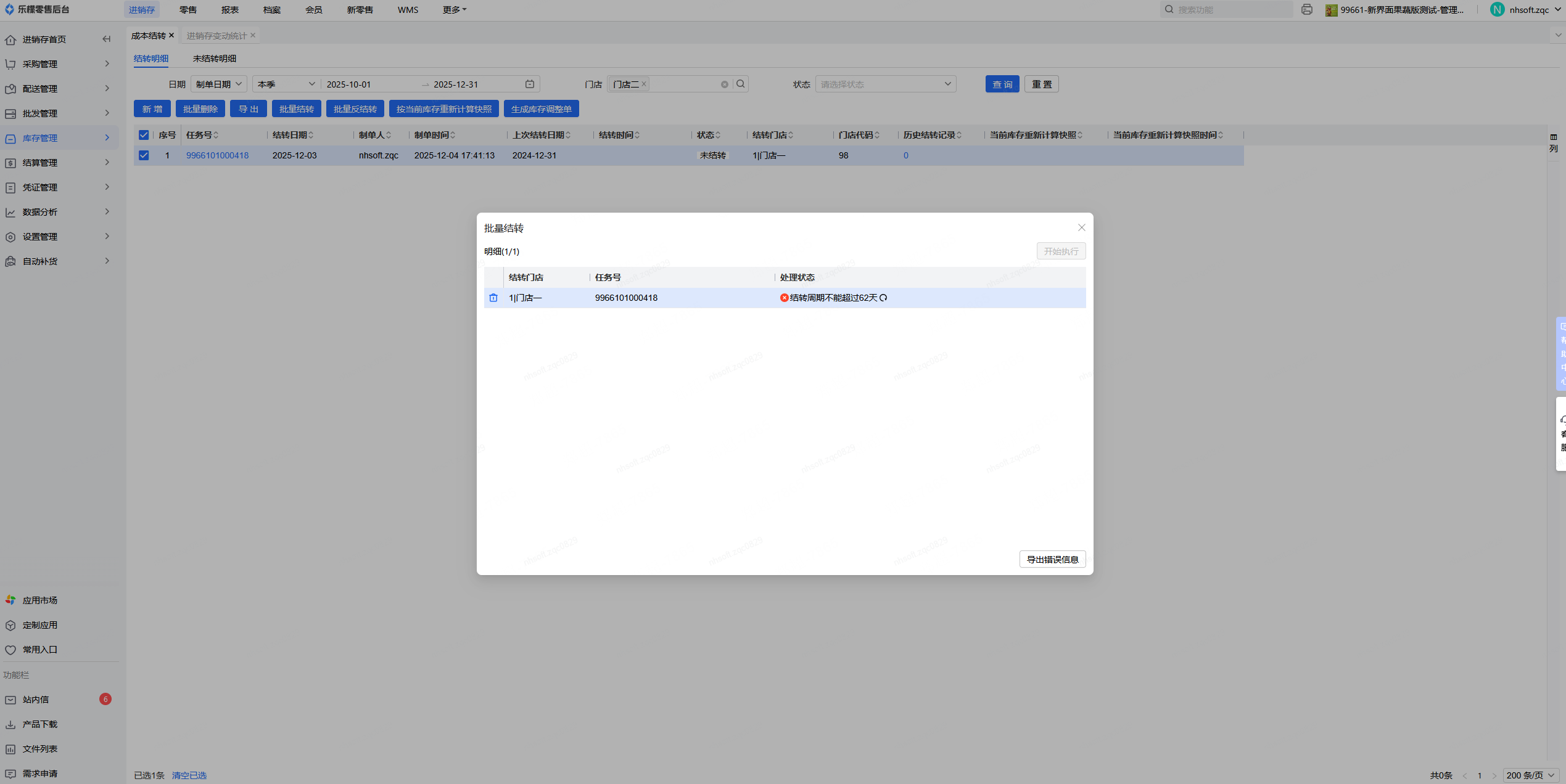 30天结转日期内存在未结转明细,请重新结转上次结转日期