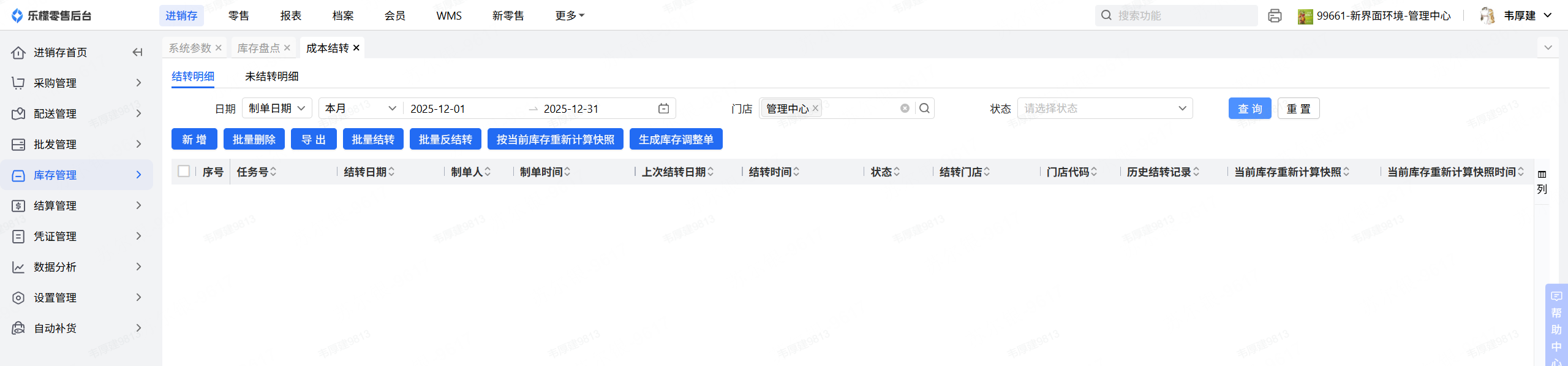 👉【操作路径】:1.先核实是否进销存-设置管理-系统参数中是否开启成本参数,开启过的,先操作成本重新计算成本