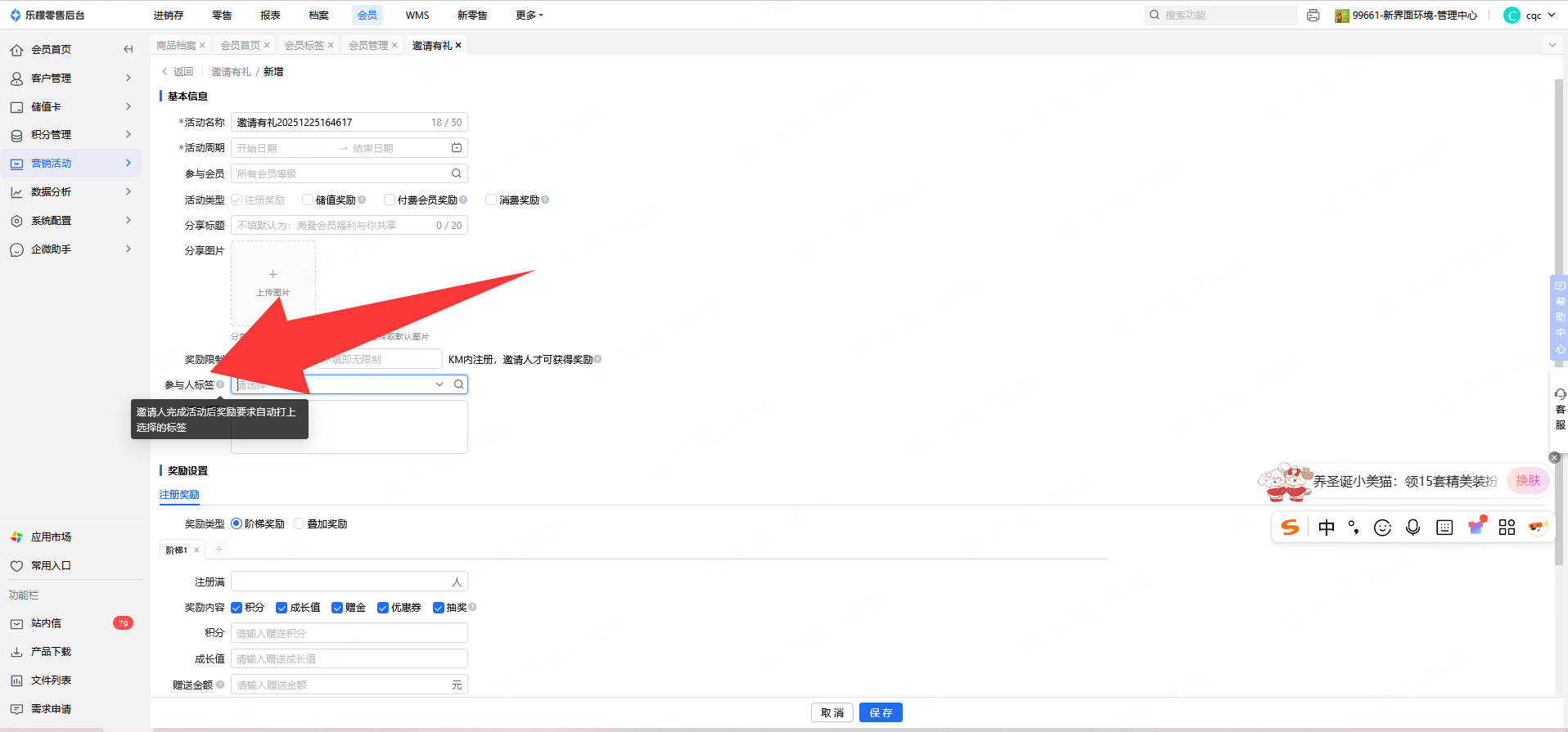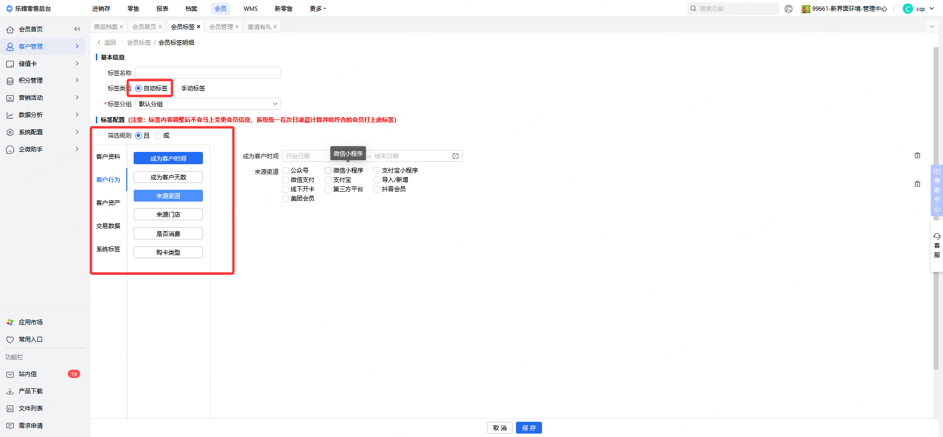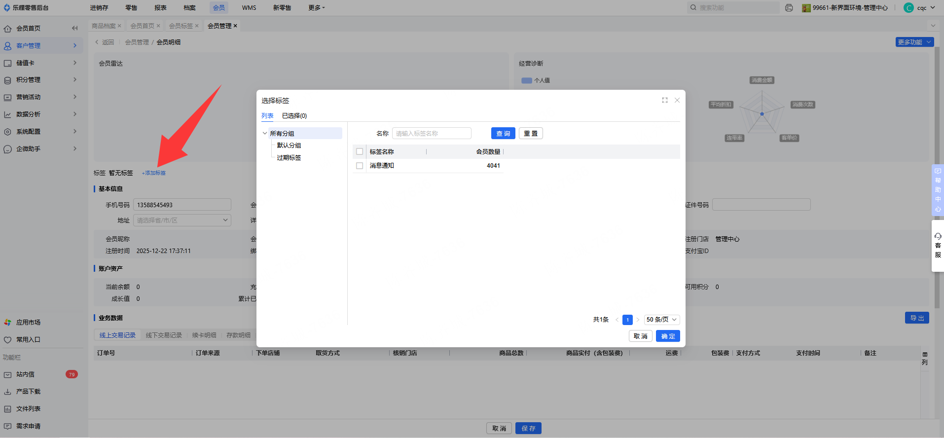 👉【操作路径】:会员-客户管理-会员管理-会员标签