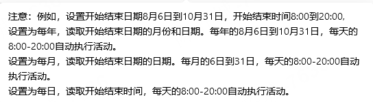 设置为每年,开始日期必须是同一年内顺延,错误示例:2024-3.8-2025-3.7