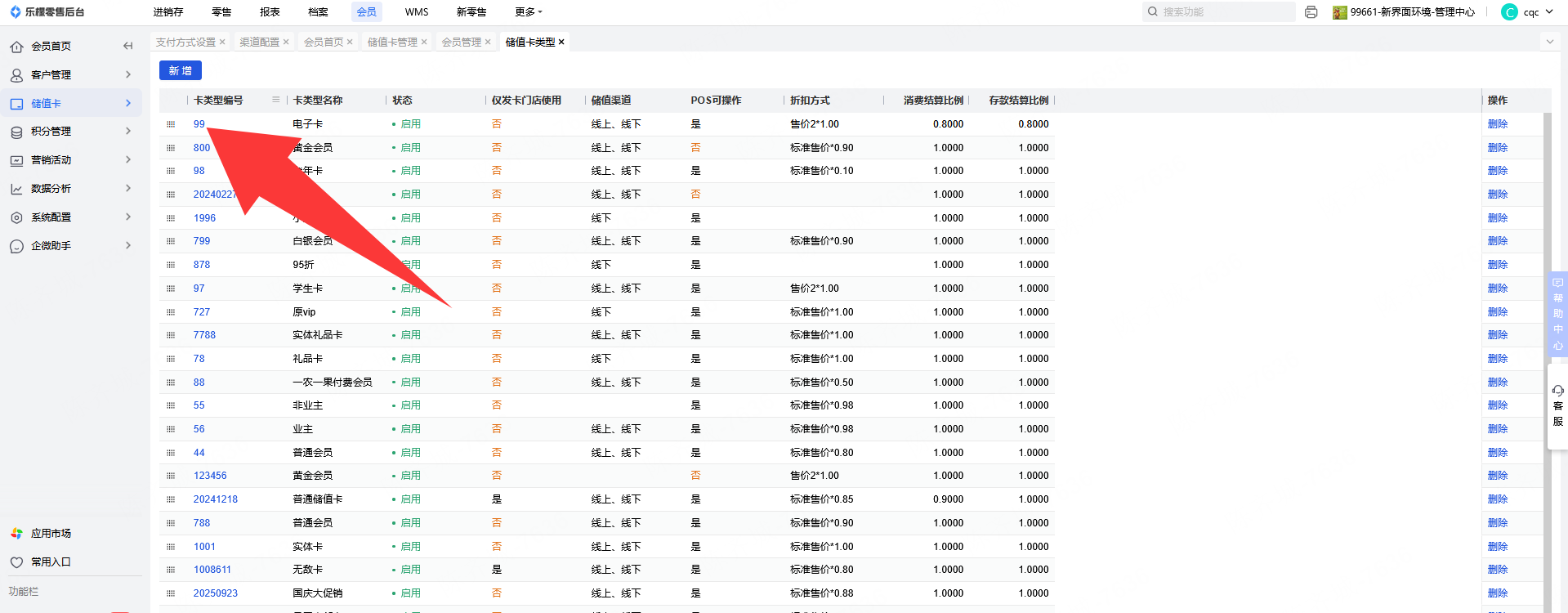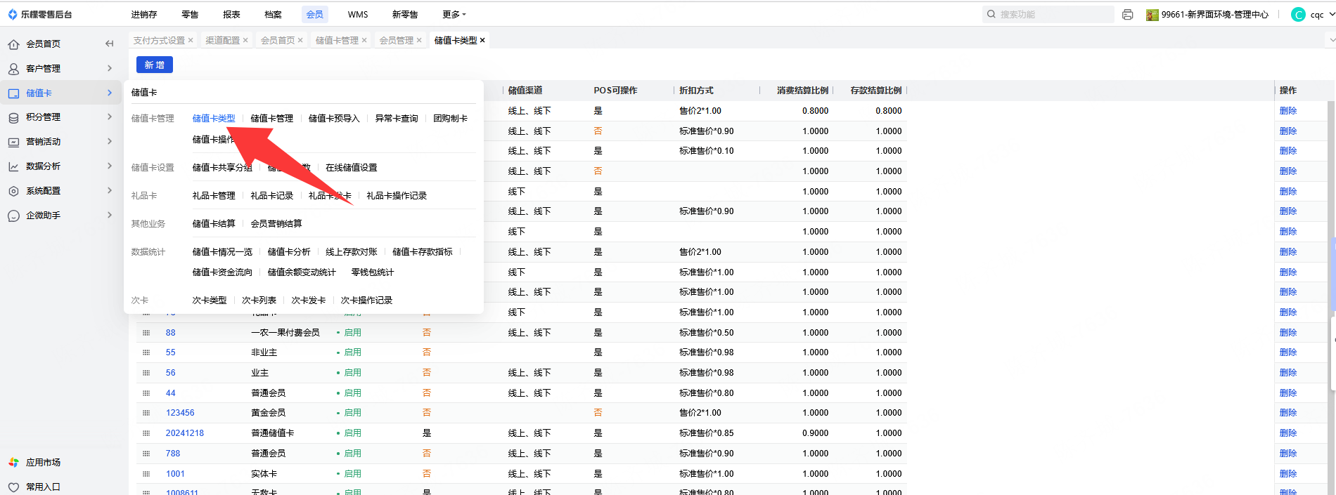👉【操作路径】:乐檬web后台-会员-储值卡-储值卡类型-进入卡类型明细-支持储值