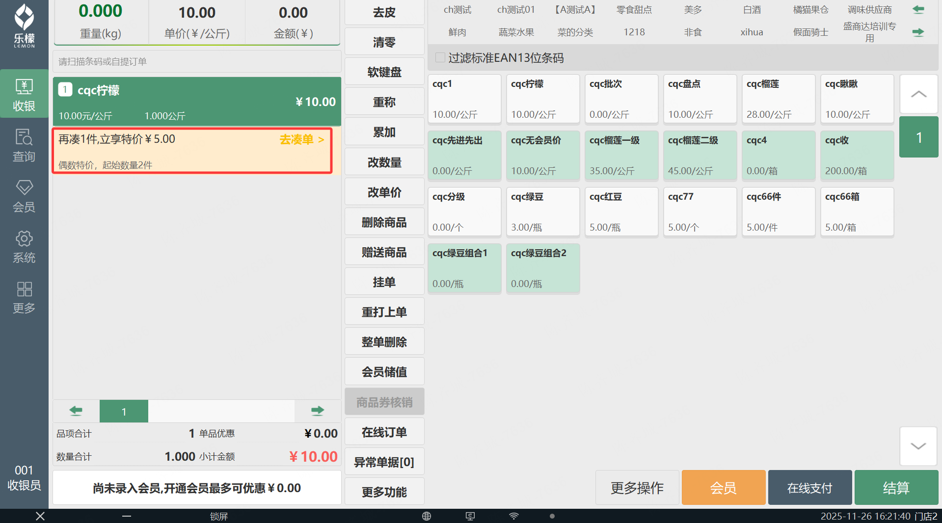 当商品需要快速进行销售,需要满足买X件后才享受活动价格,若前台收银员手动修改商品价格会降低收银效率,需要系统判断后自动打折