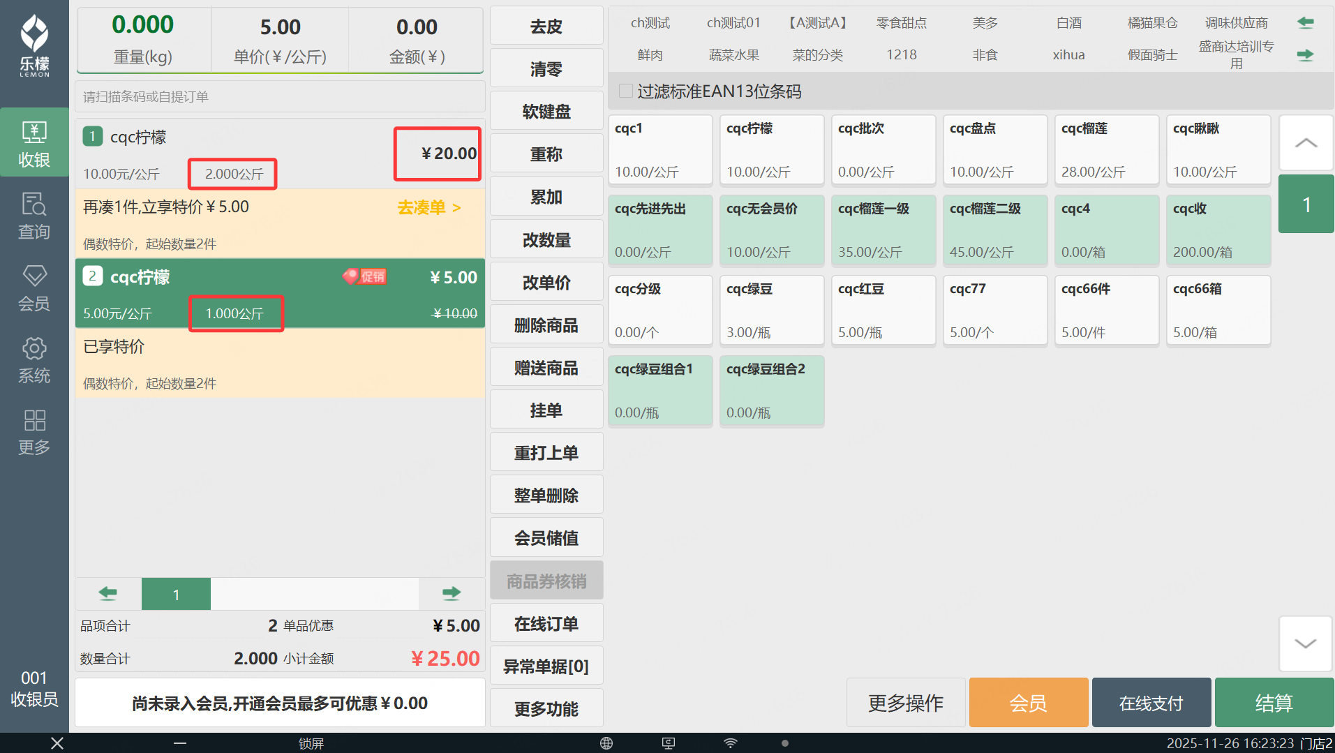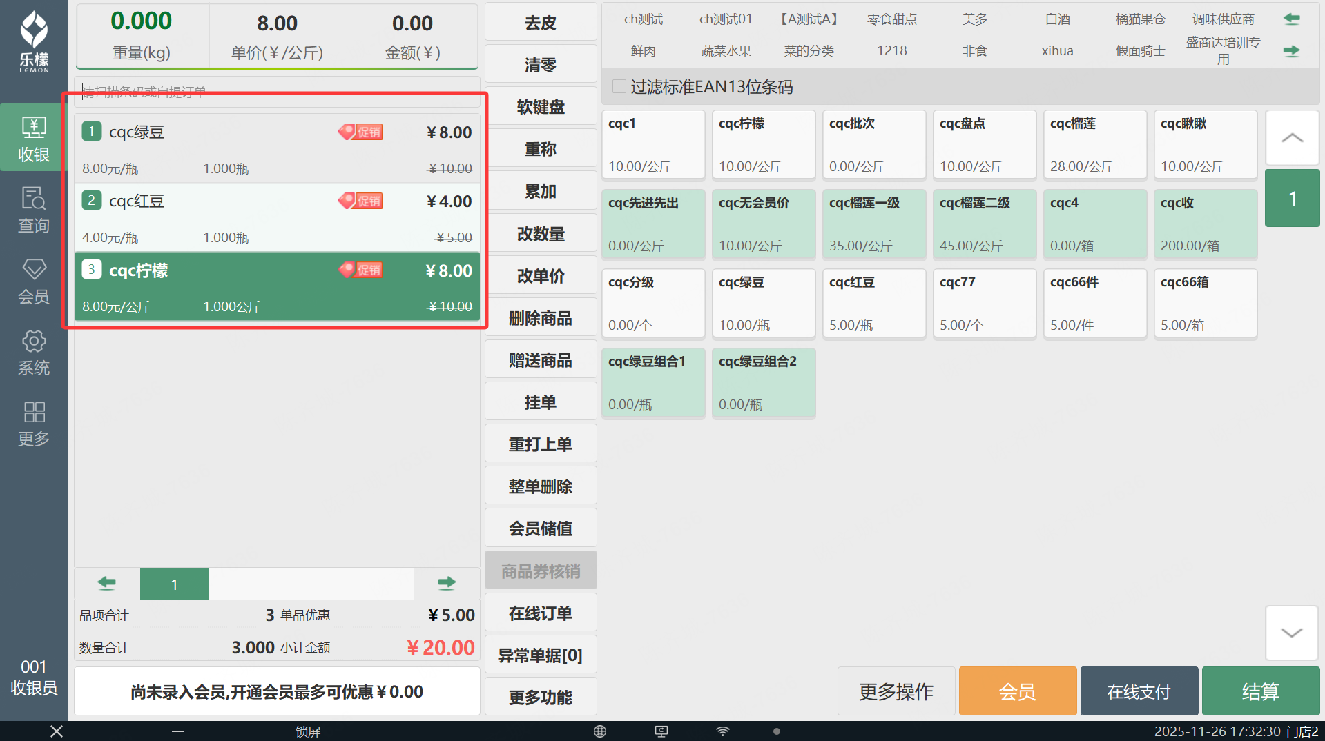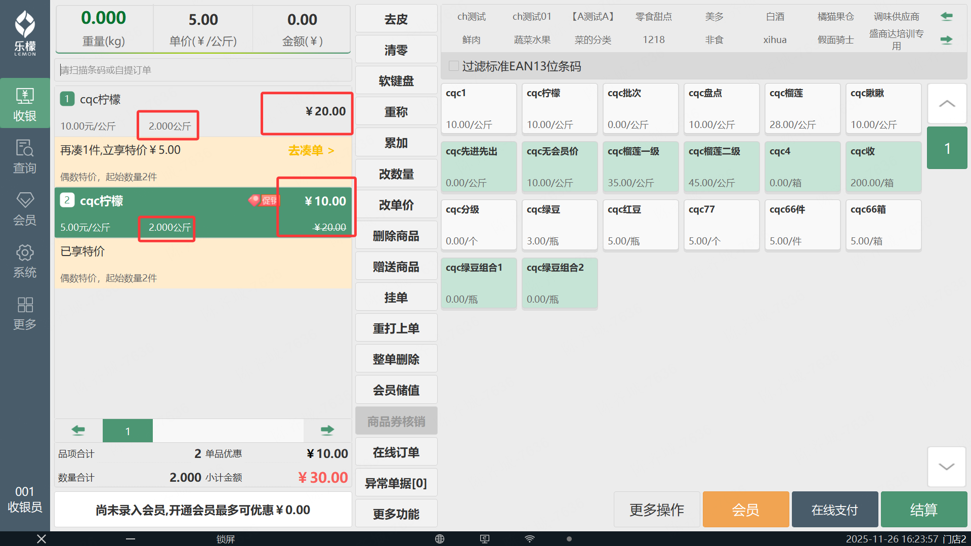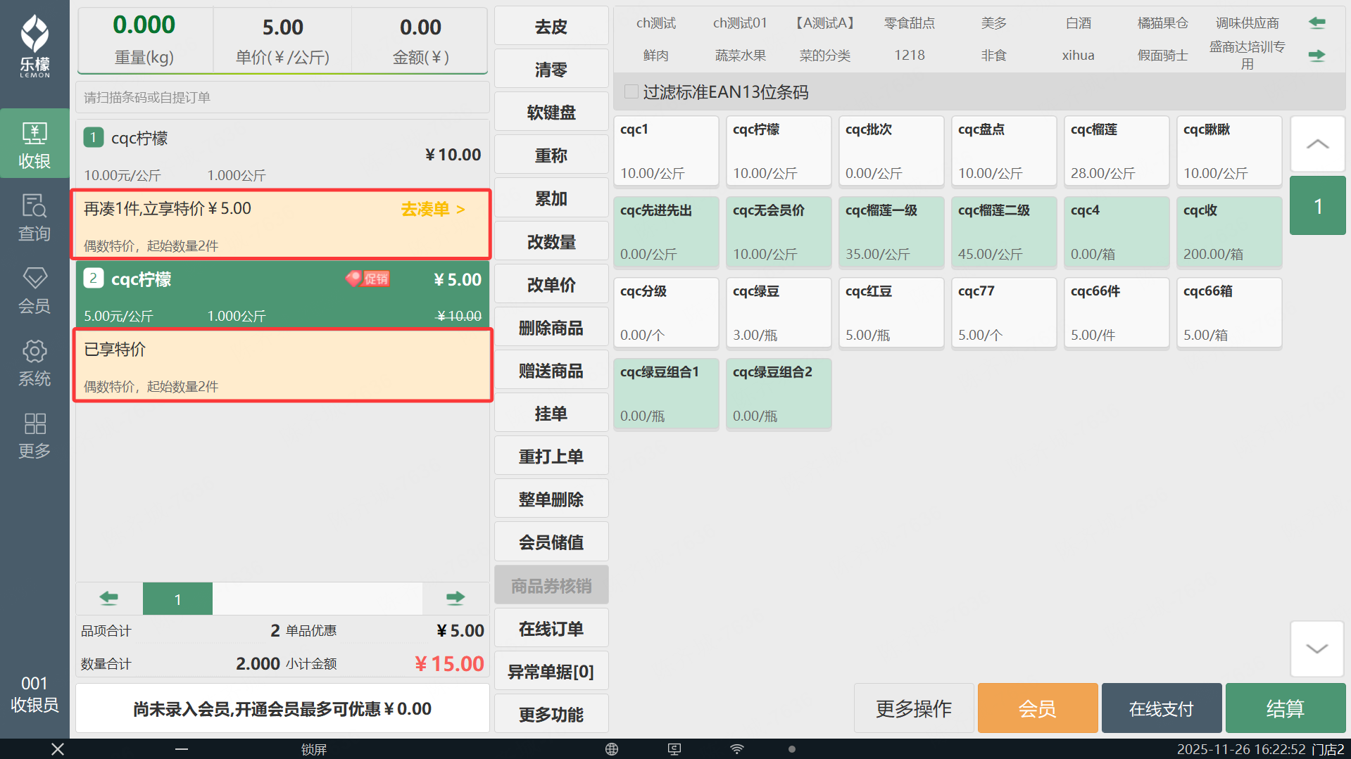 6、前台收银以录入商品顺序计算金额。建议仅创建单品活动或多项同原价的商品同特价活动。