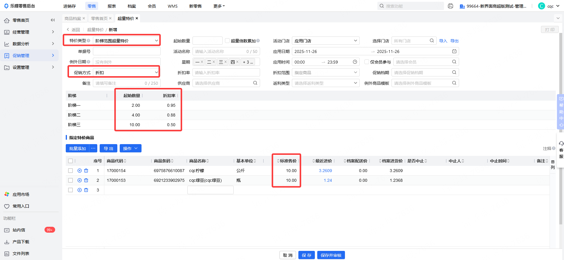 👉【操作路径】:乐檬web后台-零售-超量特价-新增