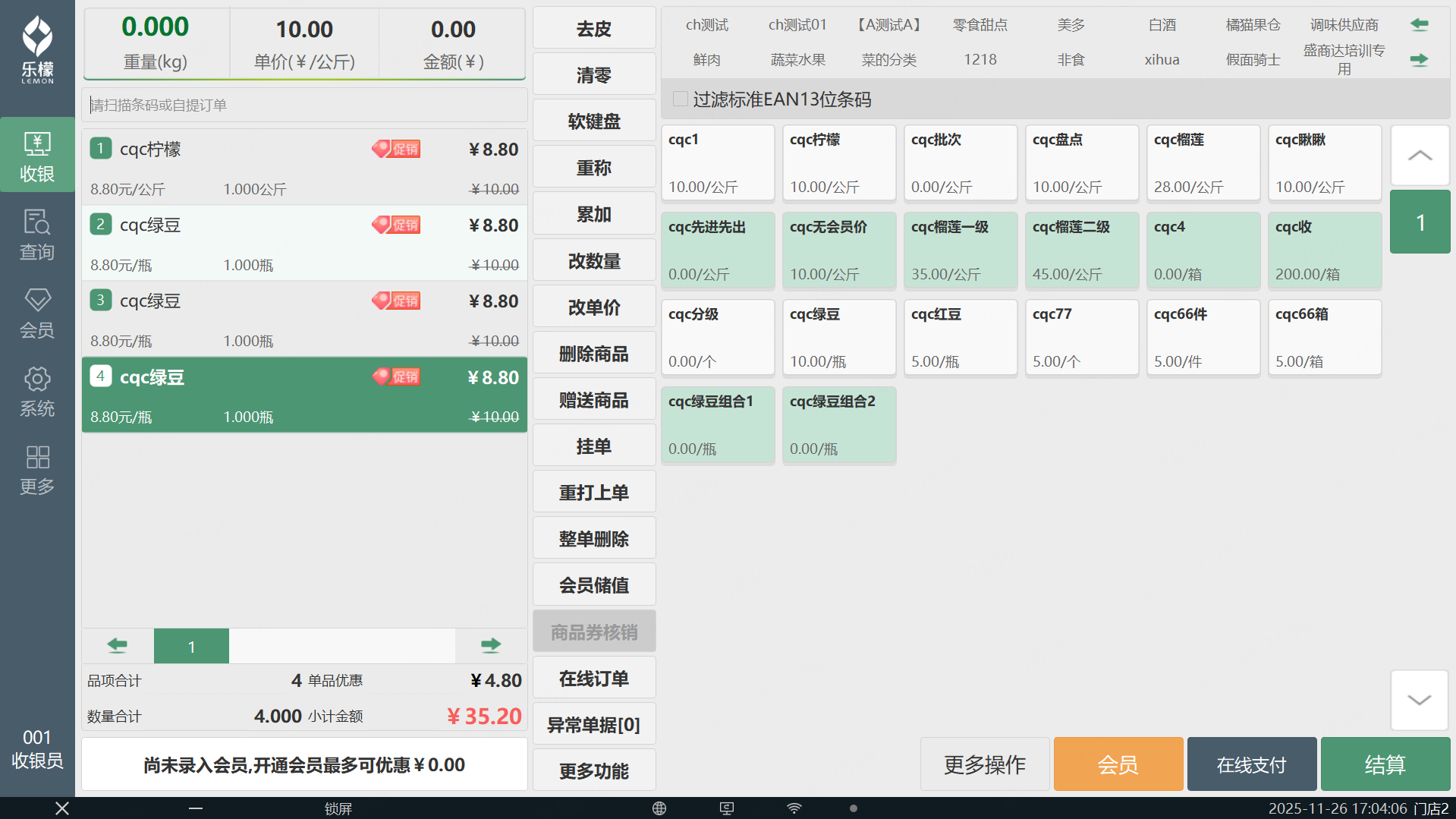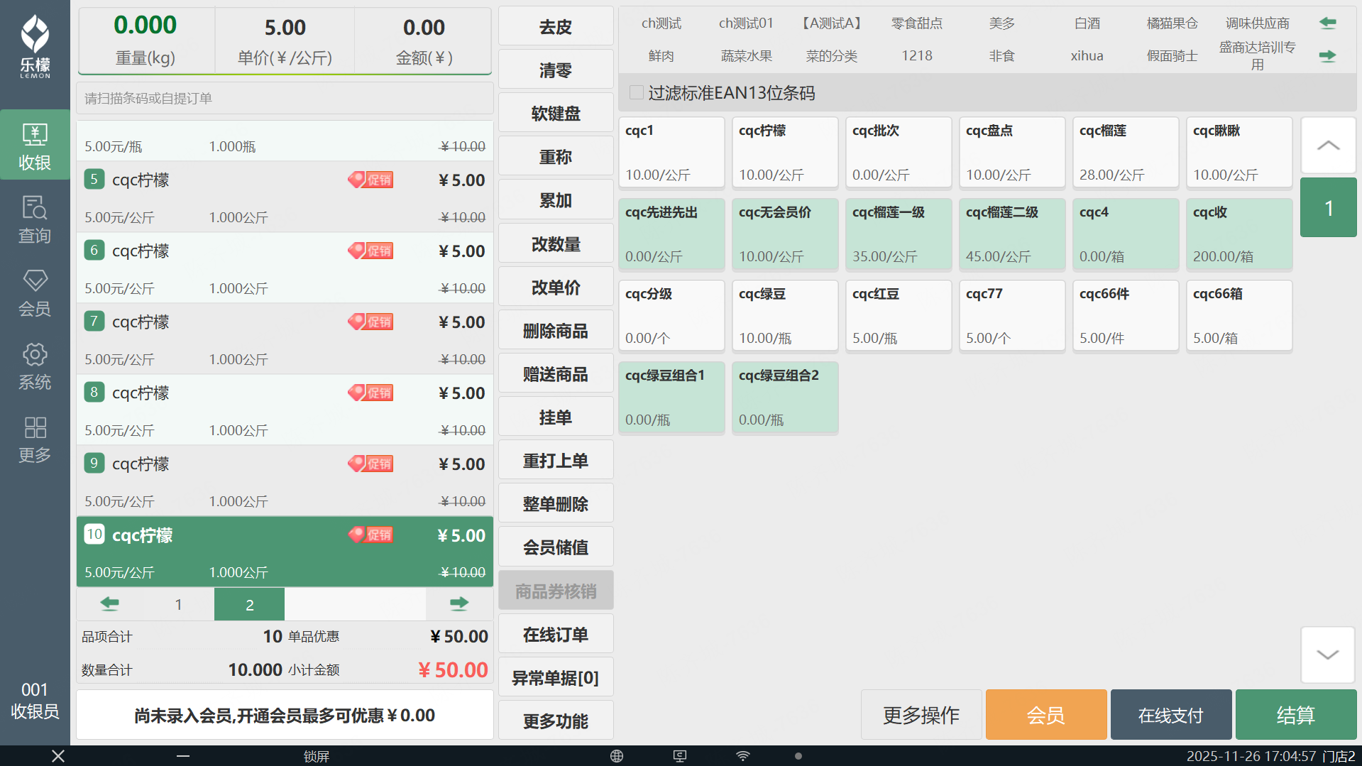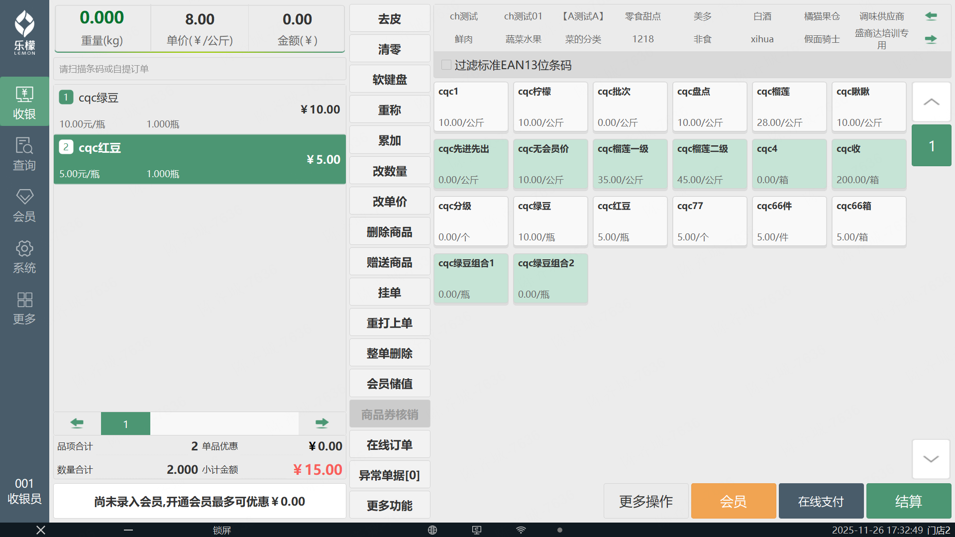 如设置cqc柠檬和cqc绿豆,当然可以设置更多商品