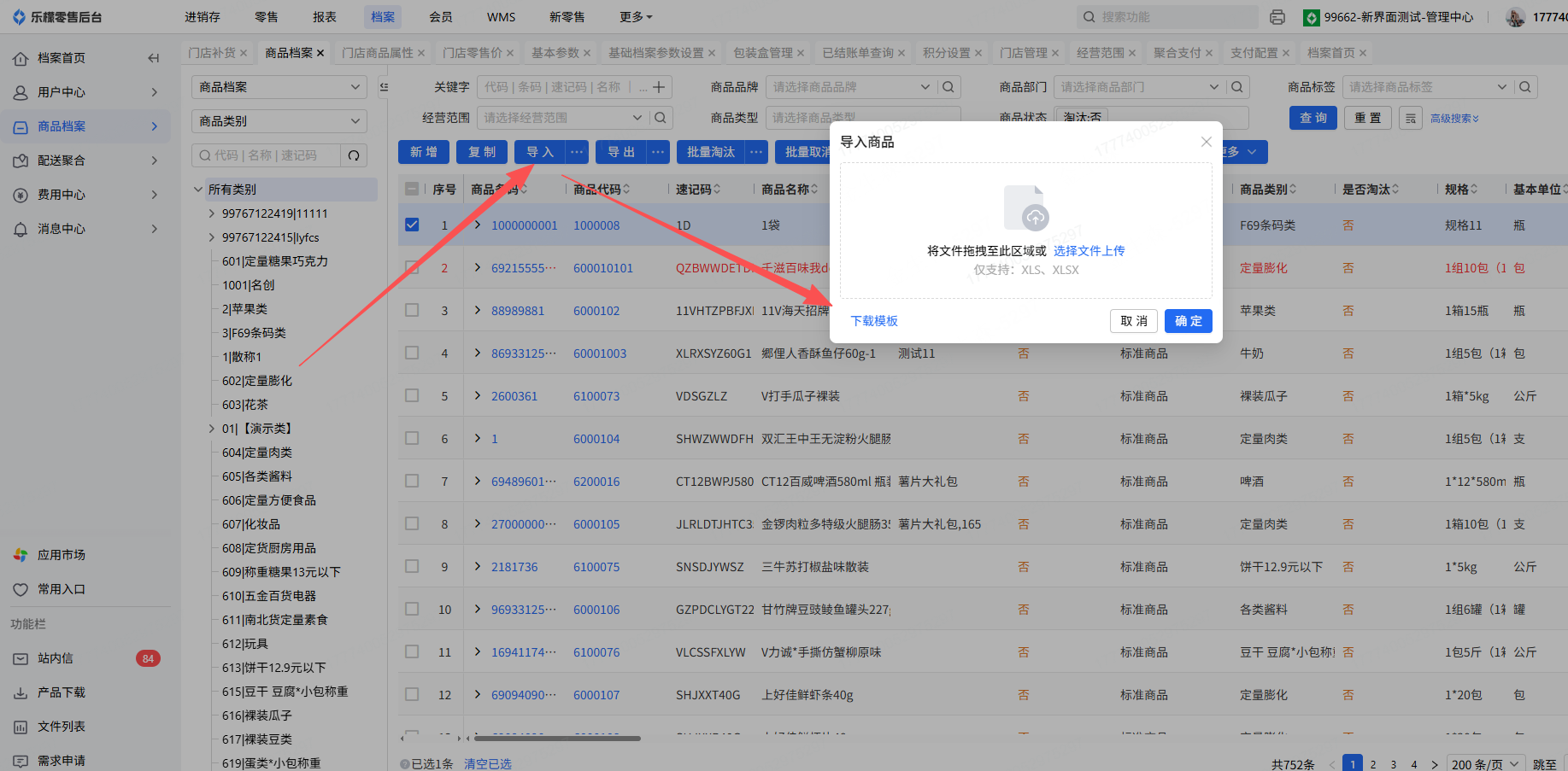 👉【操作路径】:乐檬web后台-档案-商品档案-导入-下载导入模板(点击下载导入模板)