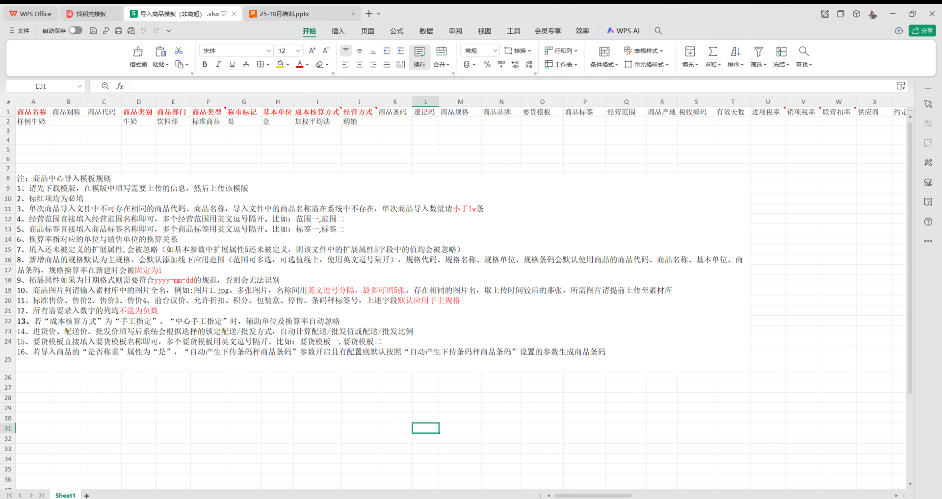 批量新增商品档案/新品导入/导入商品模板