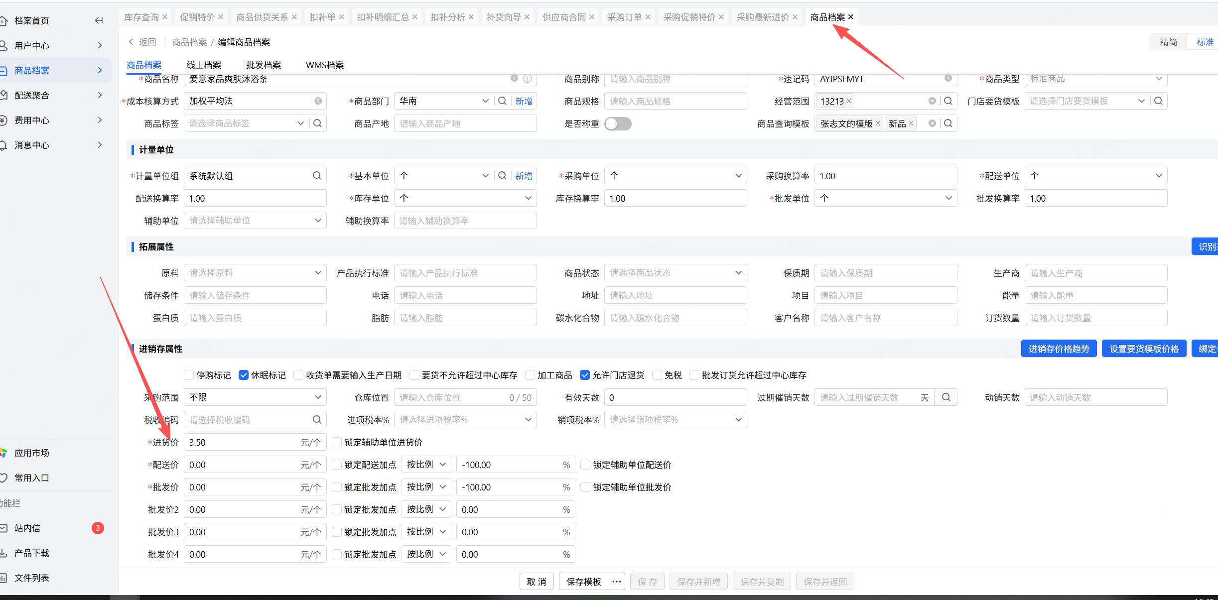商品档案进价