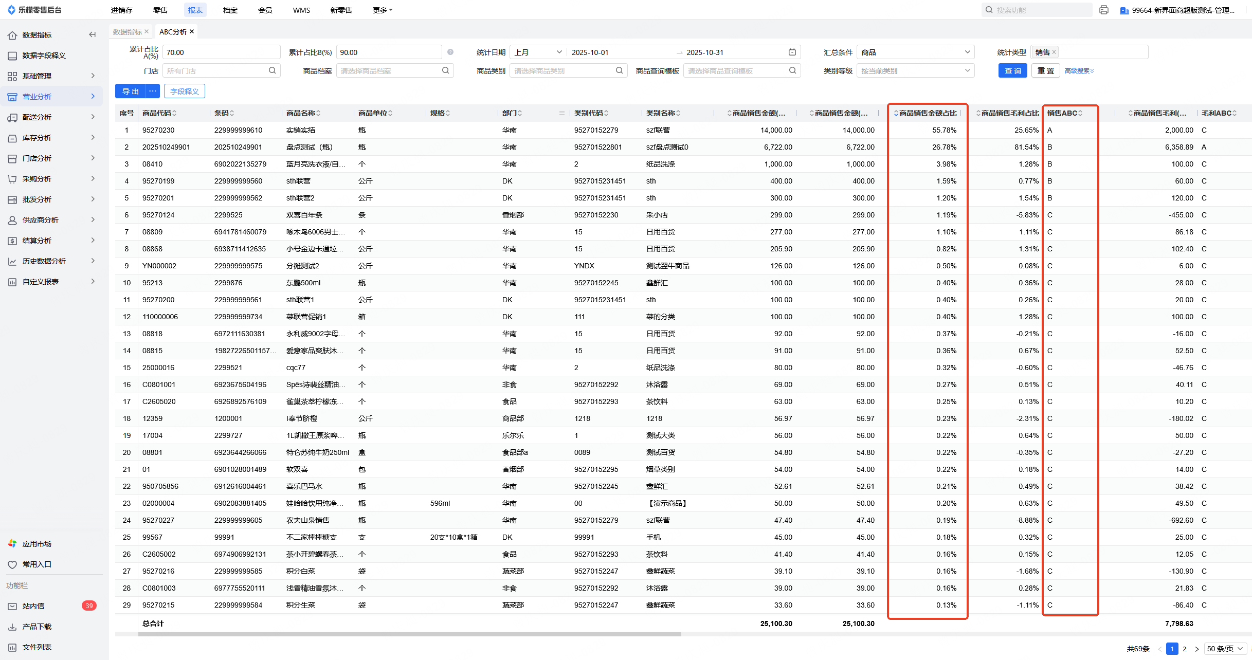 A类商品主要反应是门店主要赚钱的商品是什么,应该加大采购量或者增加增加摆台台面。C类商品对于门店营业额的贡献不大,因考虑下架,或者清出台面给A类商品腾出空间。