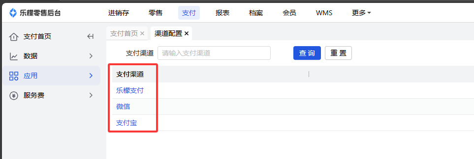 👉【操作路径】:支付-应用-渠道配置-乐檬支付
