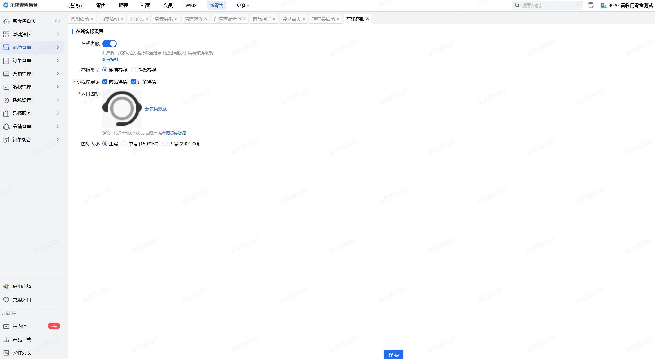 👉【操作路径】:新零售-商城管理-在线客服