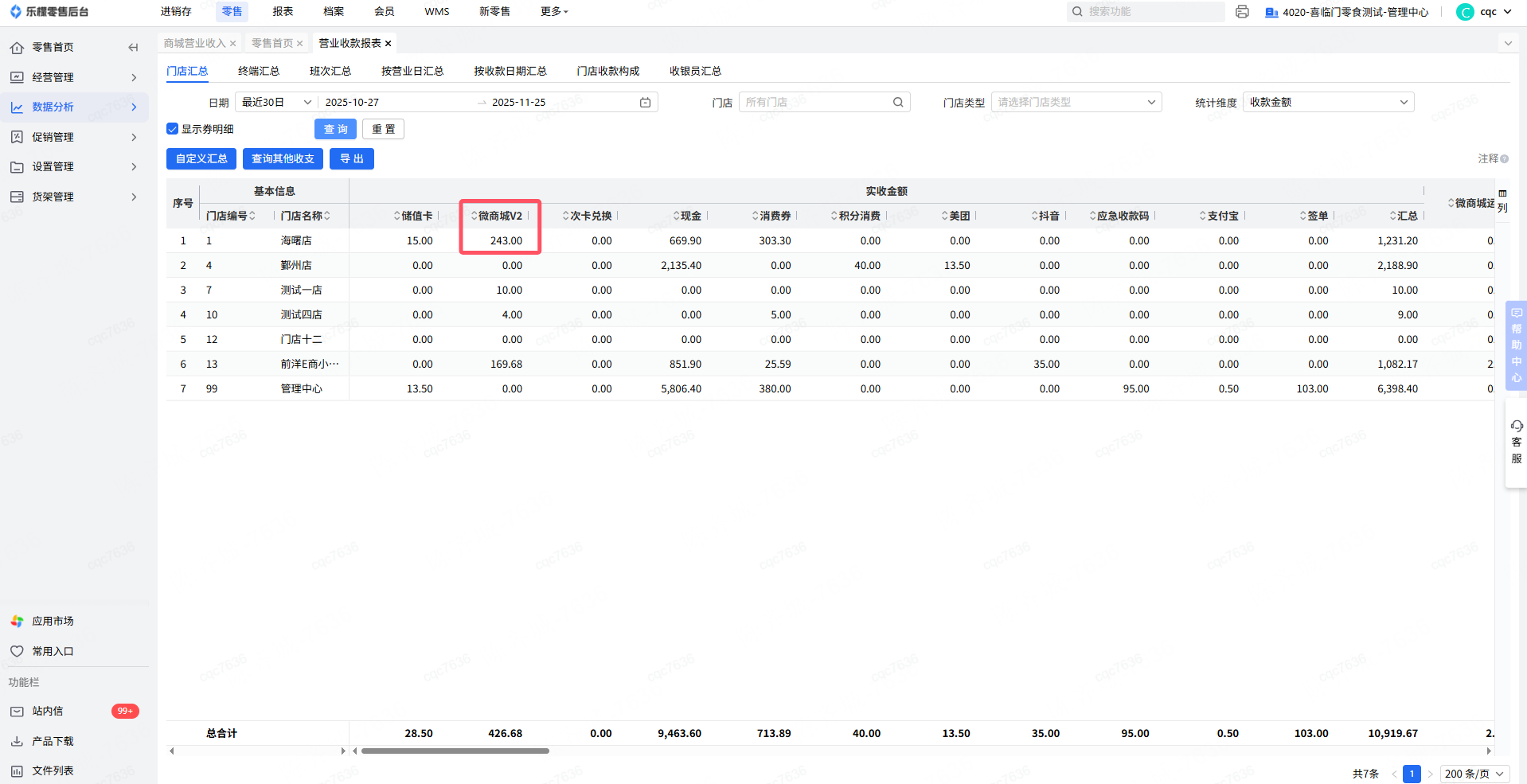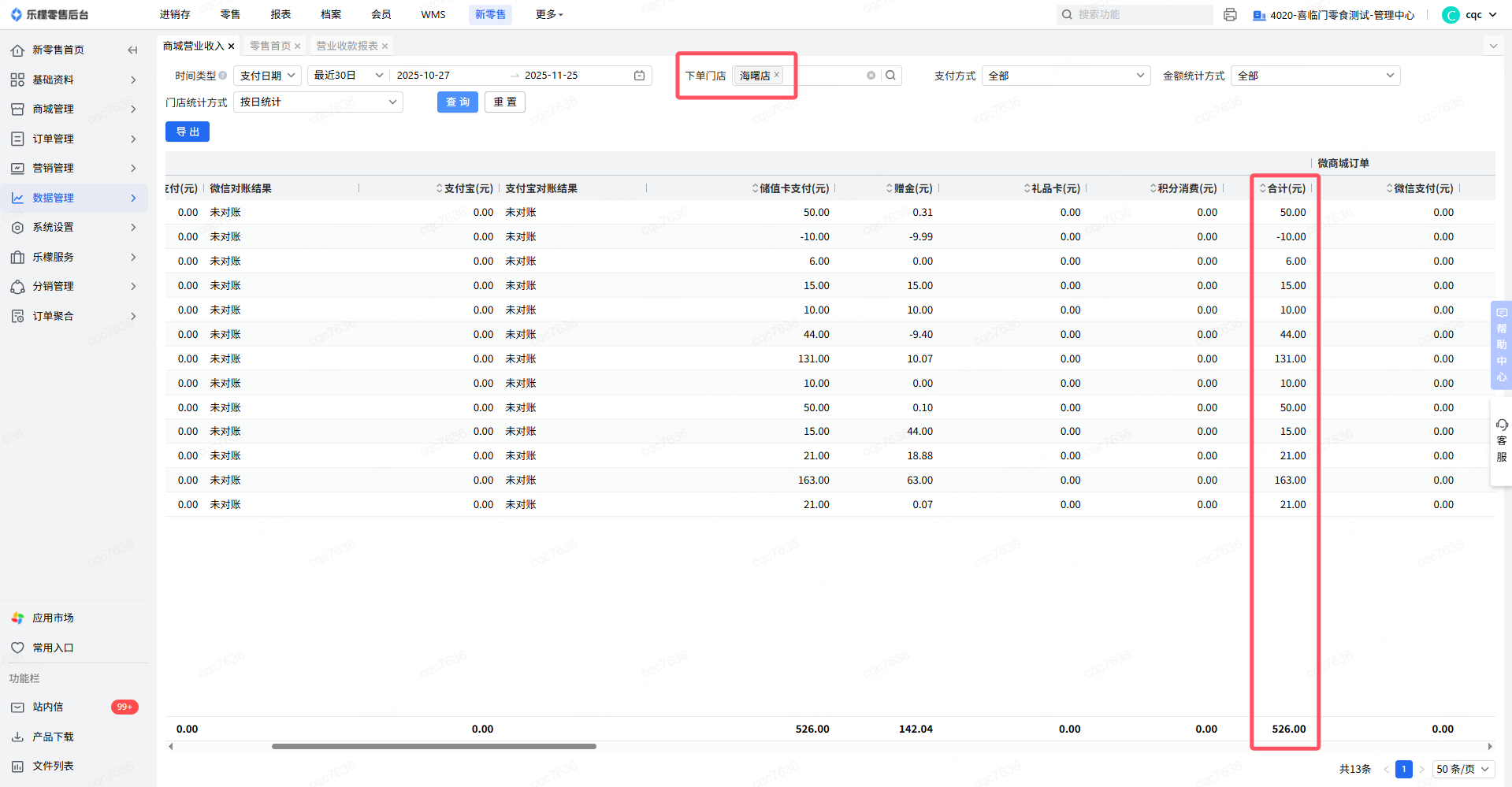 新零售商城V2中营业额与APP、乐檬零售营业收款报表中的营业额对不上