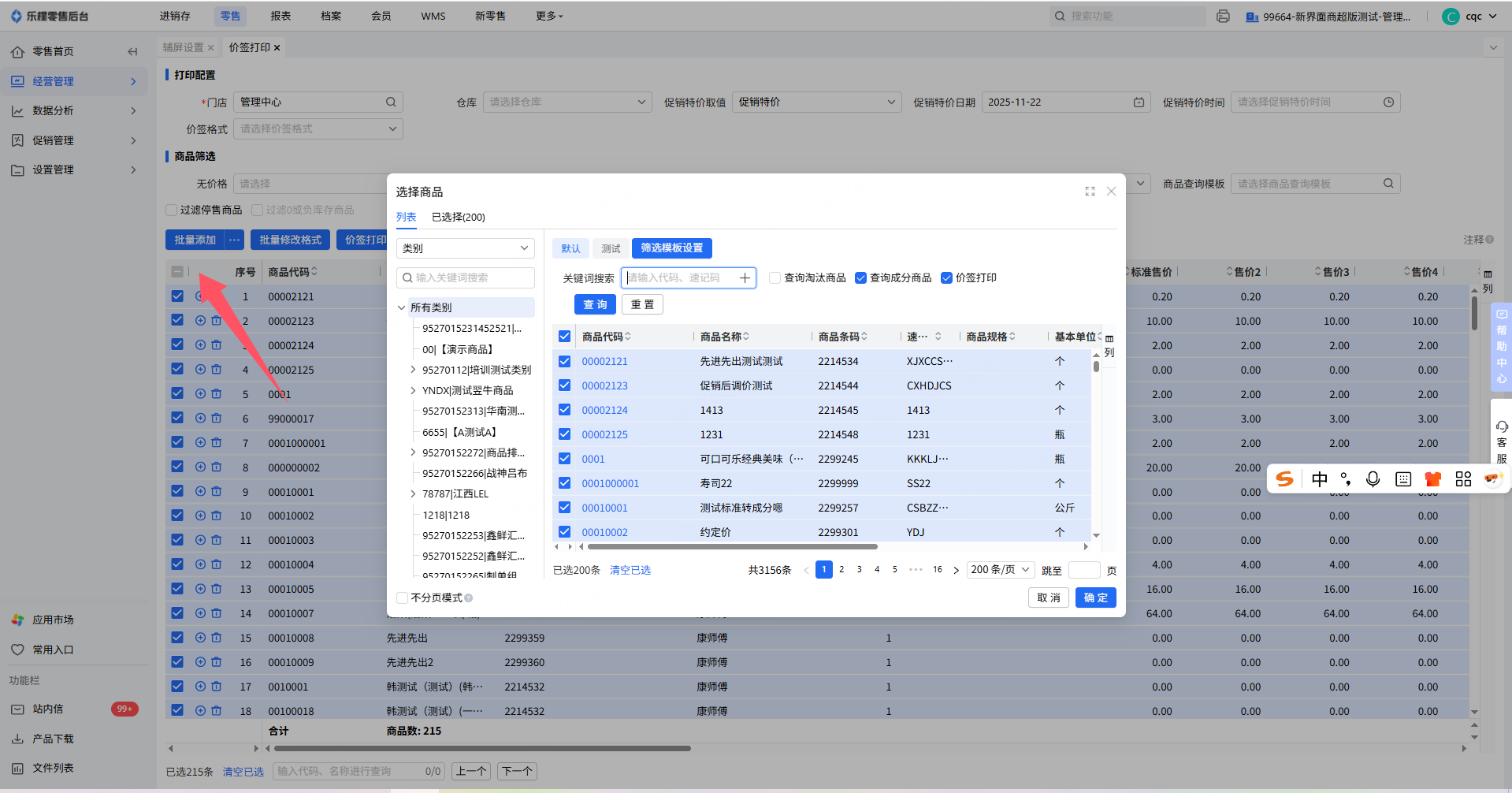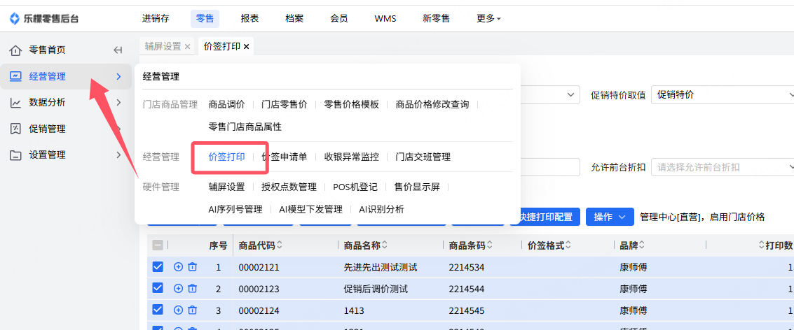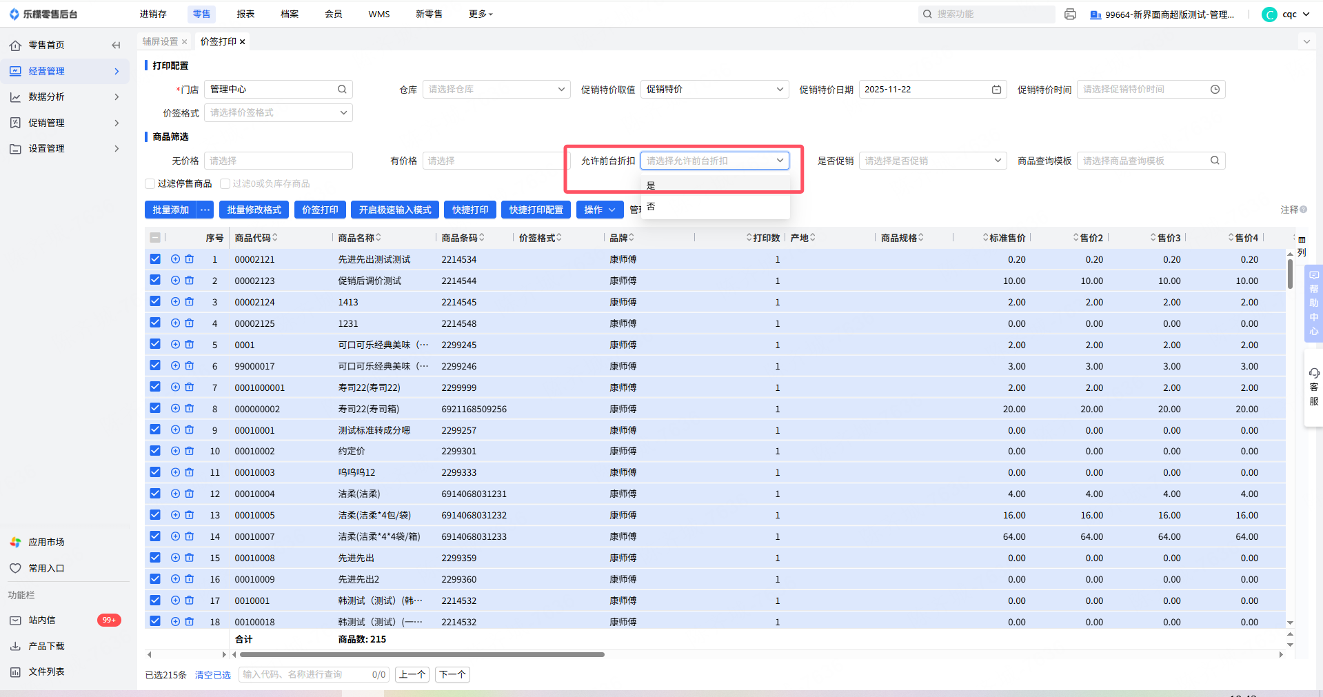 3.选择允许前台折扣是,筛选出需要打印的商品