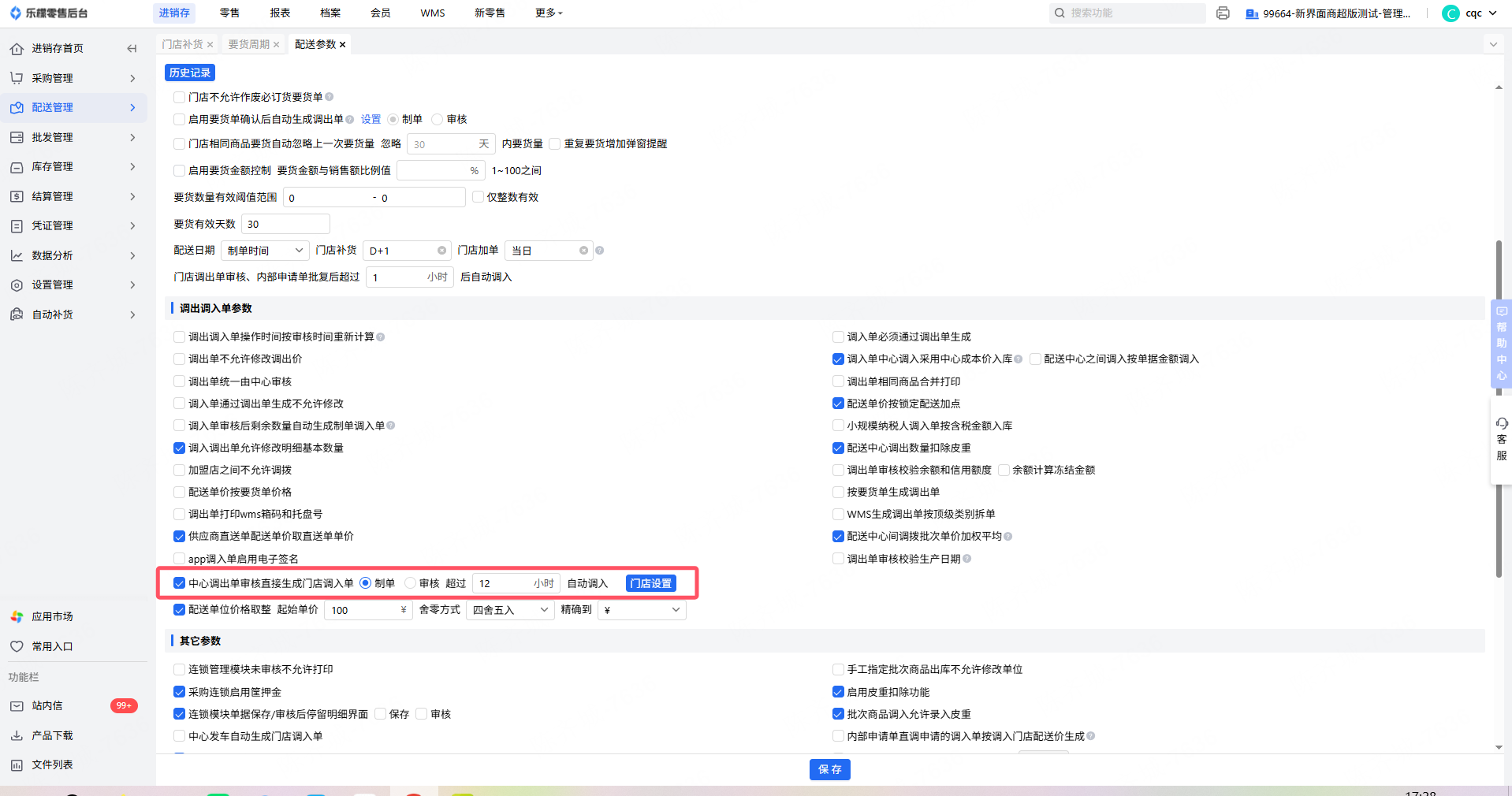 启用参数:中心调出单审核直接生成门店调入单