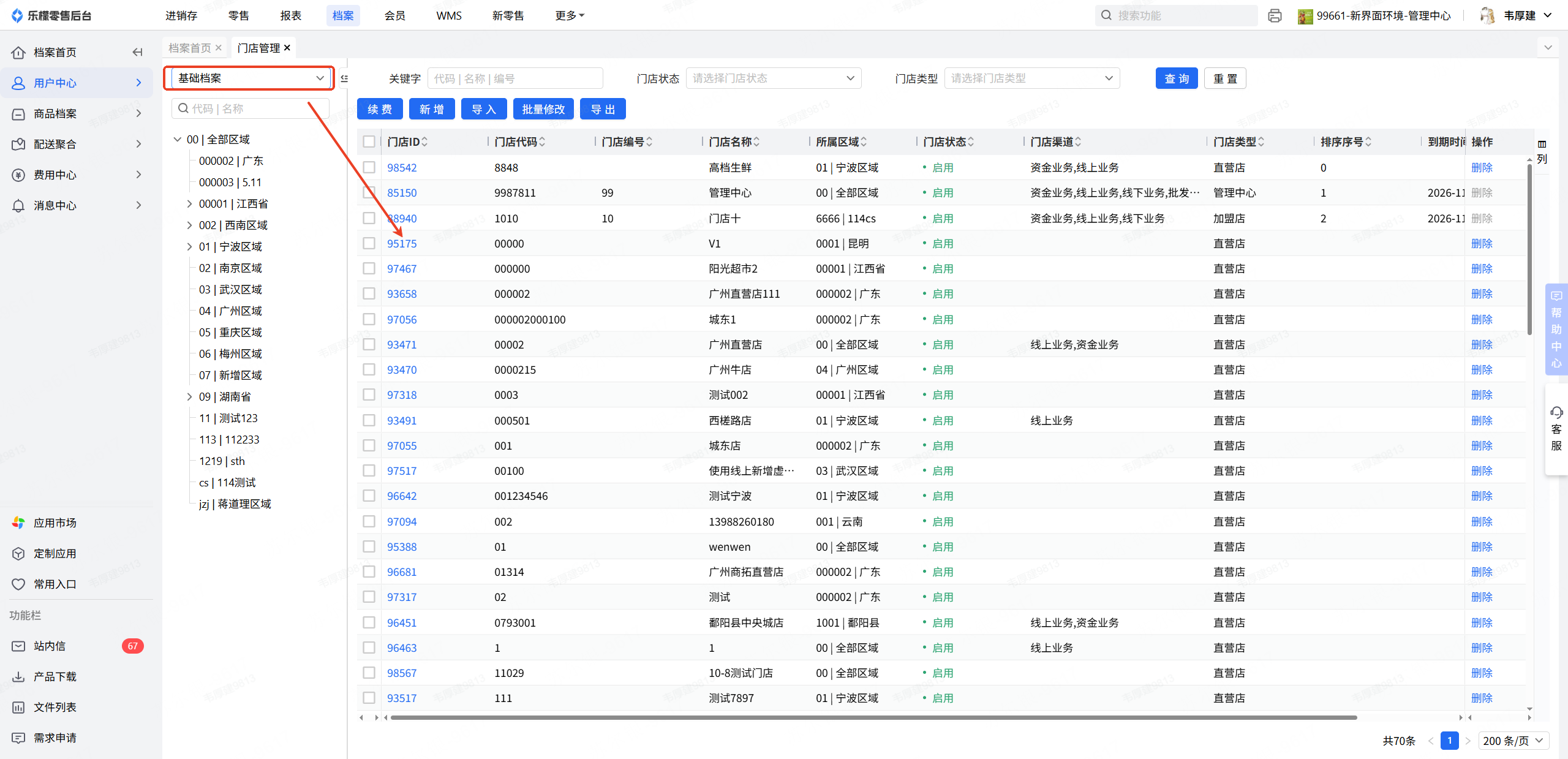 👉【操作路径】:1.档案-用户中心-门店管理