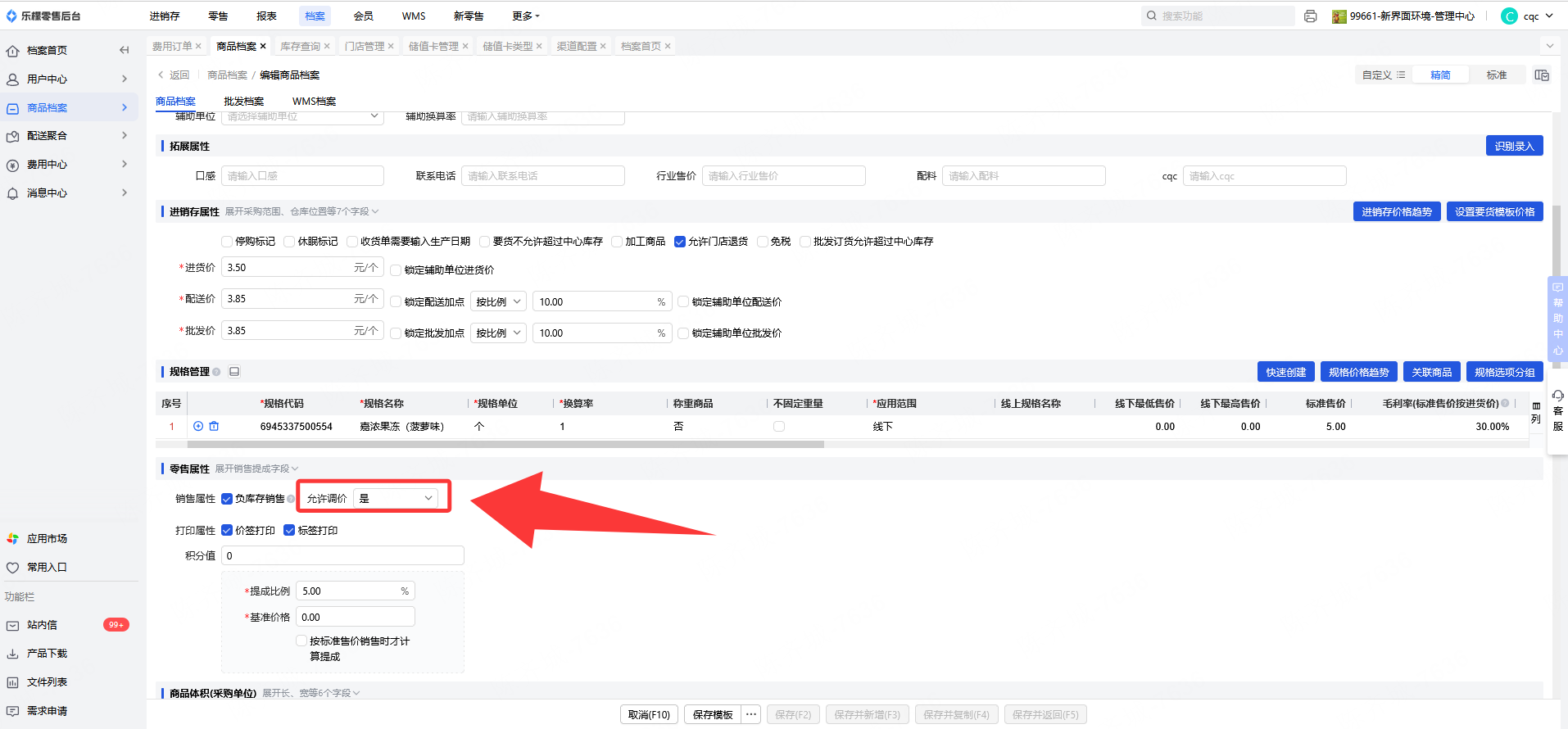 👉【操作路径】:·档案-商品档案-商品明细-是否允许调价