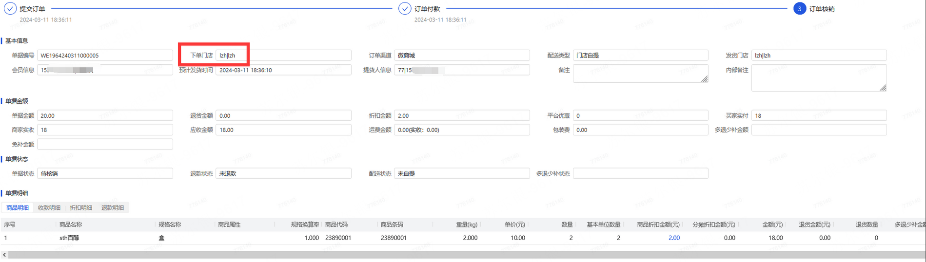 👉【操作路径】:新零售-订单管理-商城销售订单