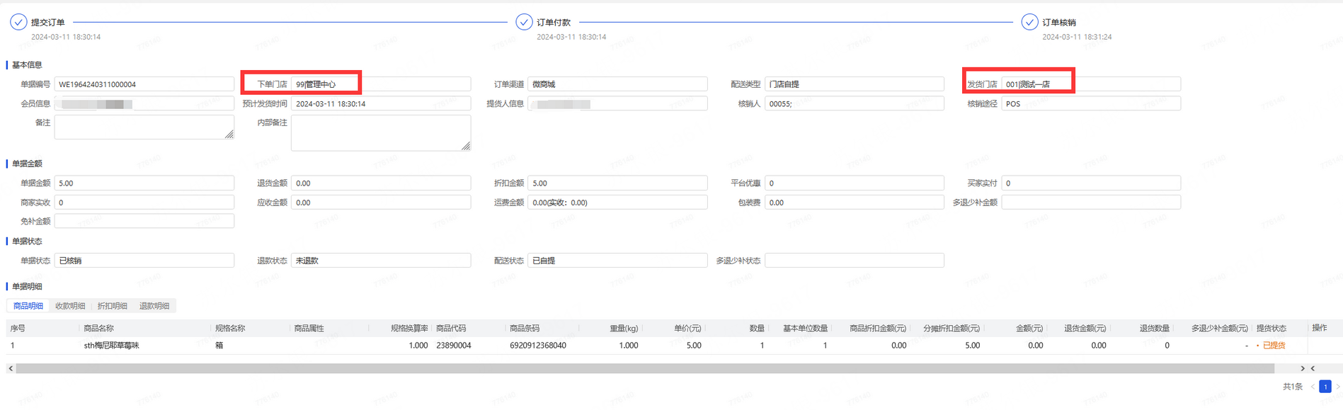 新零售下单门店与核销门店不符