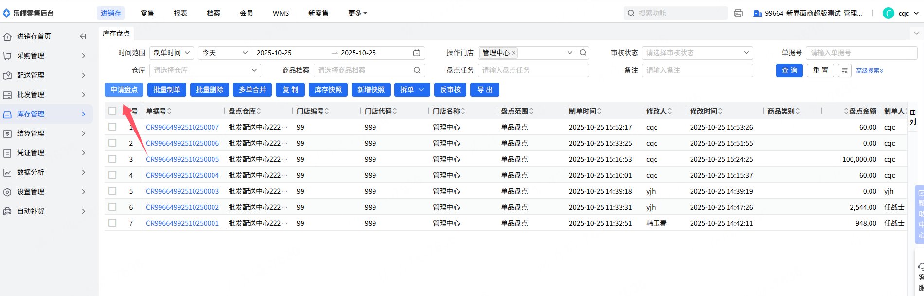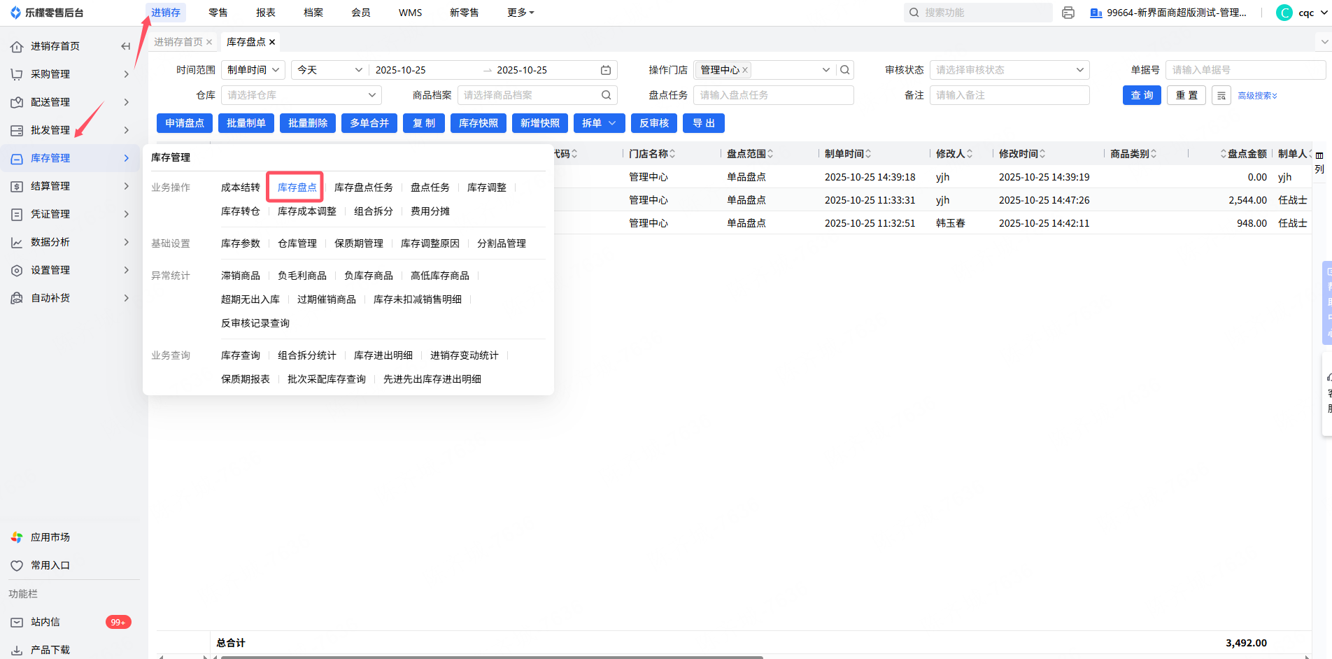 👉【操作路径】:进销存-库存管理-业务操作-库存盘点