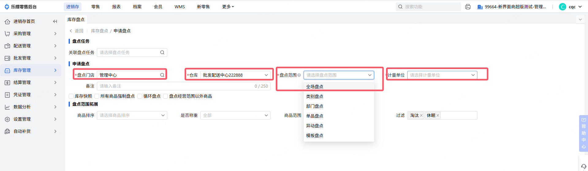乐檬零售APP库存盘点-盘点范围没有全场盘点