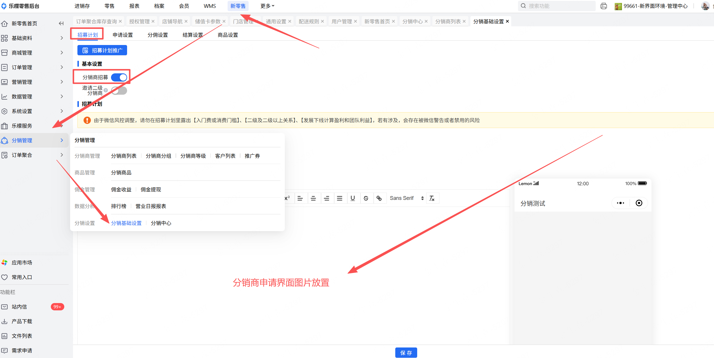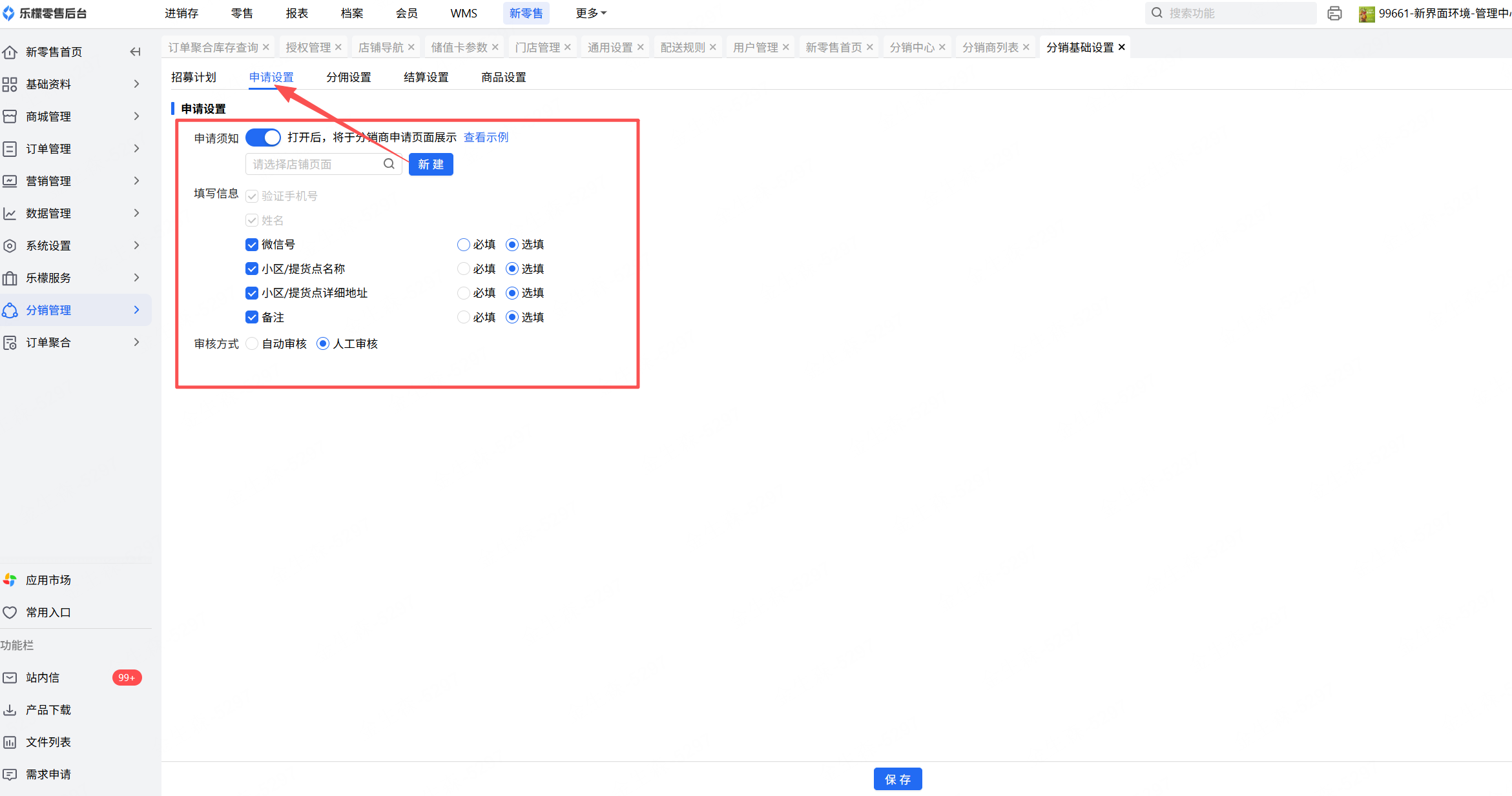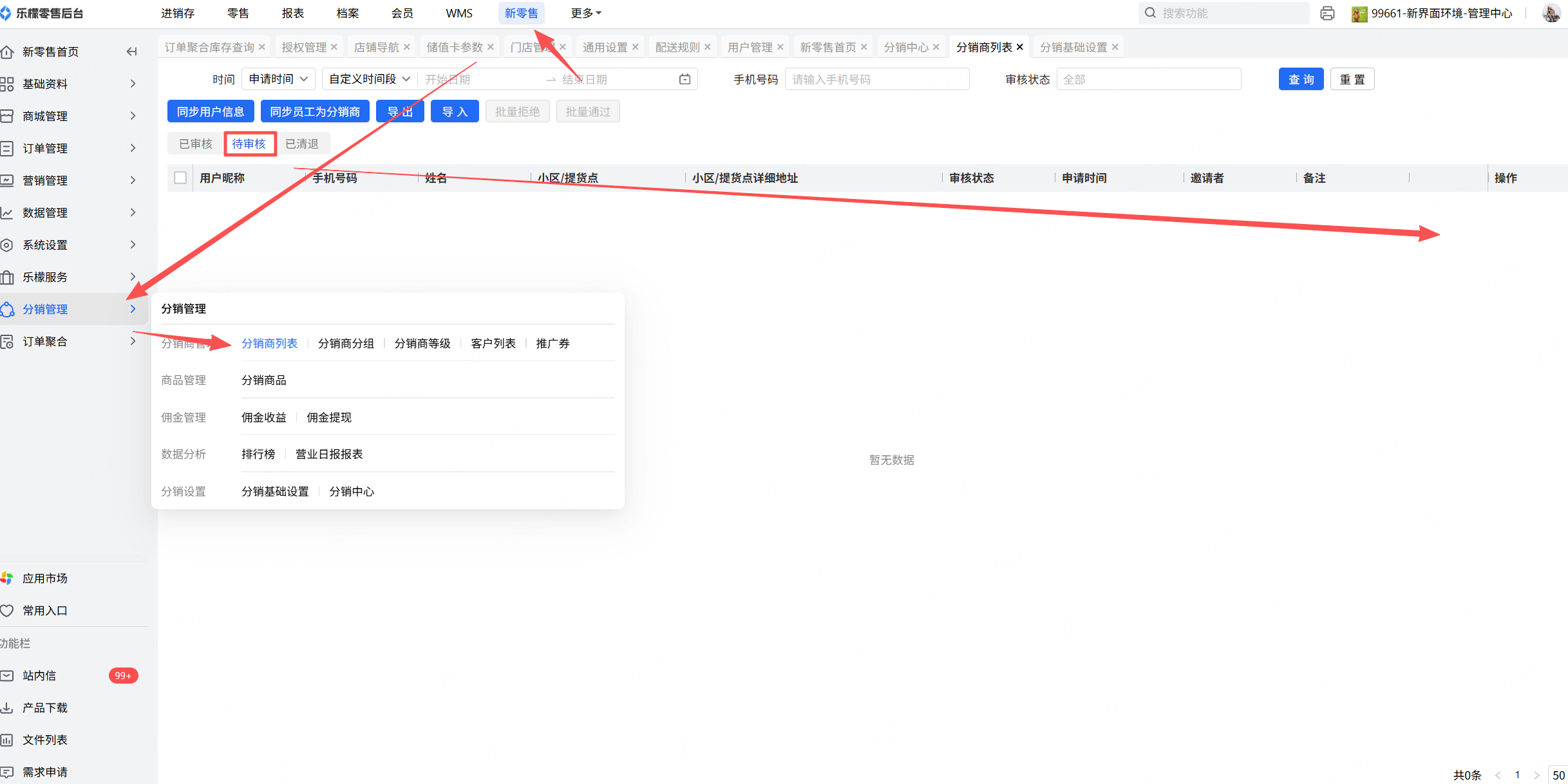 👉【操作路径】:新零售-分销管理