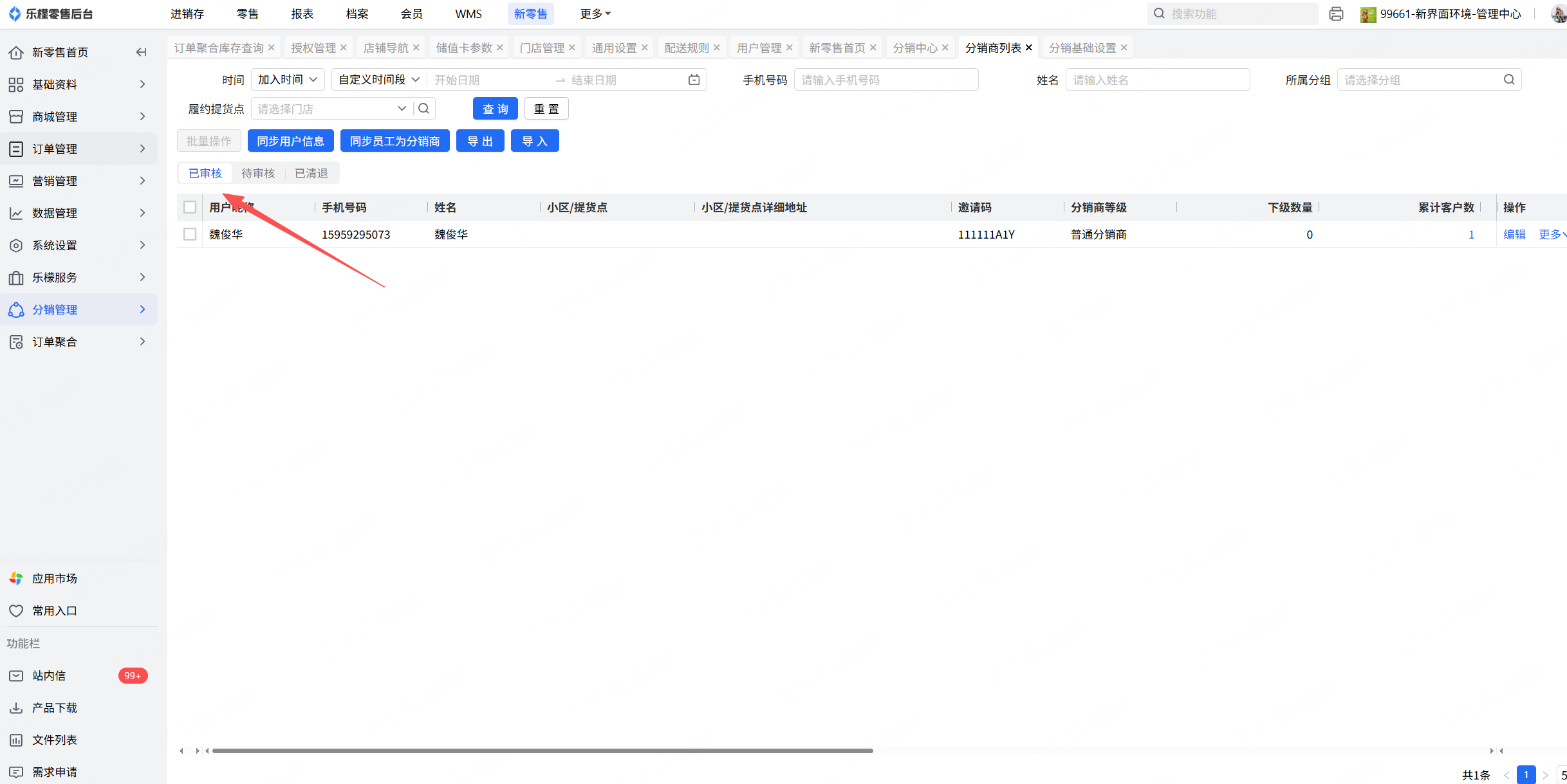 通过后可在分销管理-分销商列表-已审核界面查看到分销商信息