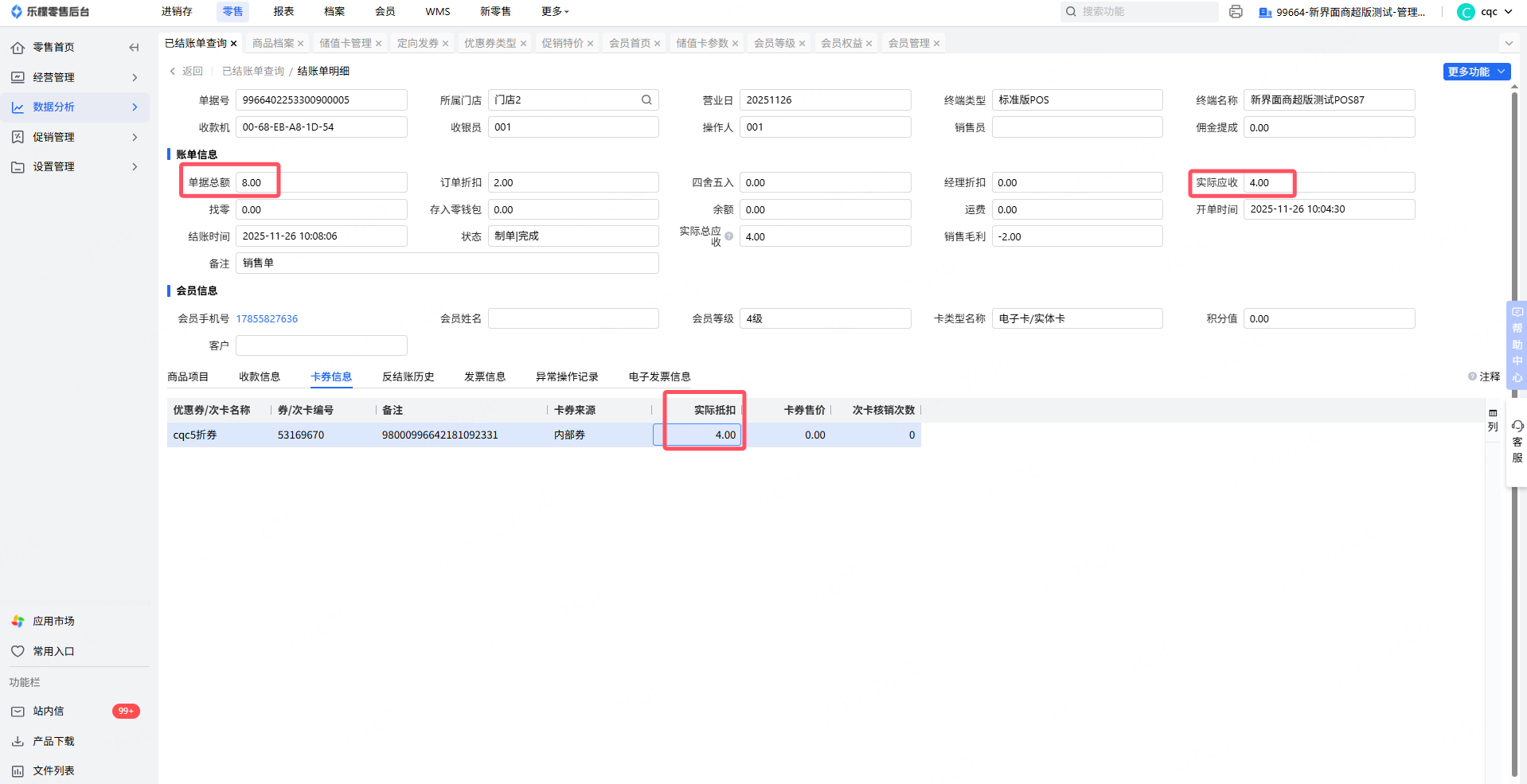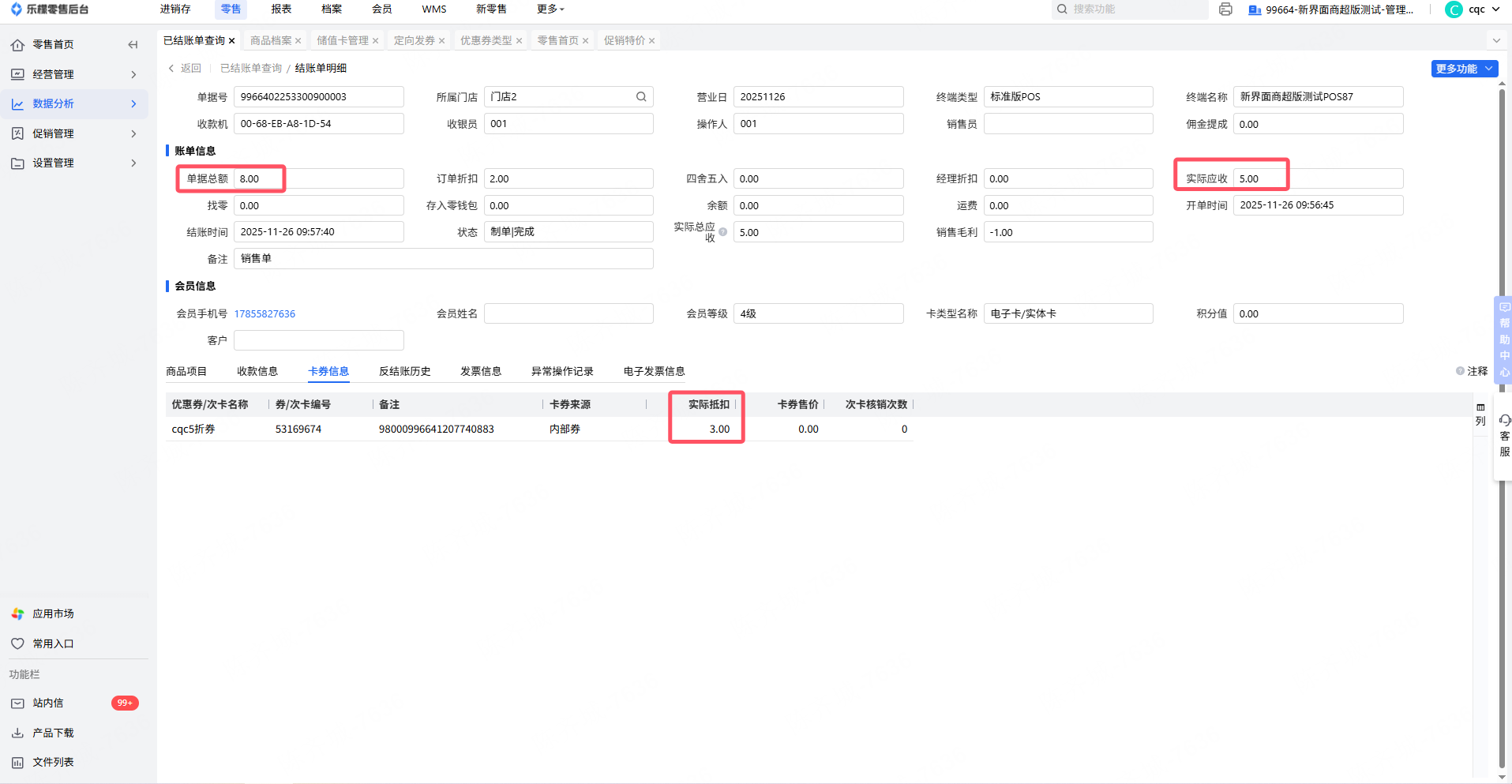 对已结账单券抵扣金额有疑问,没有完全抵扣,只是部分抵扣。以及折上折问题